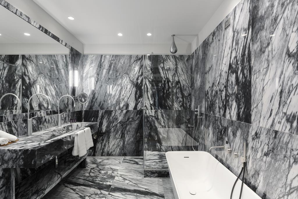 Even the bathrooms are showpieces, clad in bold marbles and artisanal tiles. Some suites look out across the glittering glass-vaulted shopping arcade, while others open onto the cultural buzz of Piazza della Scala. Throughout, the design marries Milan’s innate elegance with daring, unexpected details—just enough edge to keep things interesting.