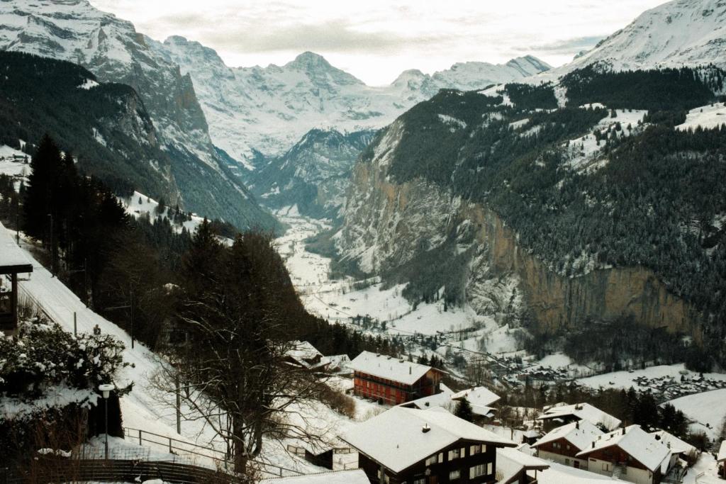 The hotel offers 90 rooms and suites, each designed to reflect the surrounding alpine beauty. Guests can enjoy bespoke pine furniture, serpentine green bathrooms, and curated art pieces that pay homage to the region’s heritage. Large windows flood the spaces with natural light, and many rooms feature balconies that open out onto sweeping views of the Jungfrau massif and the Lauterbrunnen Valley below. Inside, there’s a quiet elegance—soft textures, warm woods, and carefully chosen lighting that echo the serenity of the surrounding landscape. Every detail, from the handcrafted headboards to the wool throws draped over armchairs, is designed to cocoon guests in comfort while keeping them connected to the alpine world outside.
