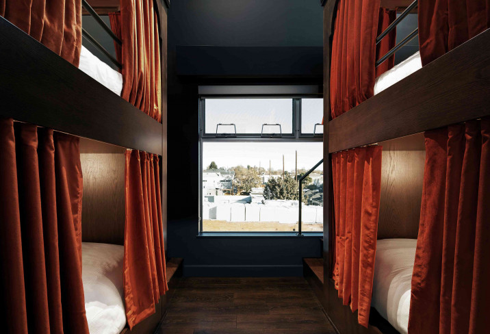 Guestrooms continue this balancing act of history and reinvention. Classic king and queen rooms lean into boutique luxury with Revival linens, Marshall speakers, and Le Labo bath products, but the true innovation lies in the group-friendly bunk suites. Full-size beds—built into bespoke timber frames—reimagine the camaraderie of frontier lodging through a design lens: sturdy, practical, but unexpectedly indulgent. Dressing benches, flexible wardrobe units, and thoughtfully designed bathrooms make them as functional as they are atmospheric. For couples or solo travelers, spacious king suites and more intimate rooms carry the same design language—tailored, tactile, and imbued with quiet references to Colorado’s frontier past.
