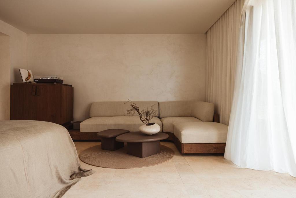 Just 50 minutes from Santorini—but worlds away in energy—Folegandros is the kind of island that feels whispered about. Two towns. Terraced farmland. Beaches without beach clubs. Into this hushed landscape comes Gundari, a minimalist masterpiece that manages to honor the silence while raising the bar. With just 27 suites and villas, each one bio-climatically designed and crowned with its own solar-heated infinity pool, Gundari disappears into the hillside like it’s always been here. Some villas are literally carved into the rock, grounding you in the earth while your gaze stretches across the endless Aegean.