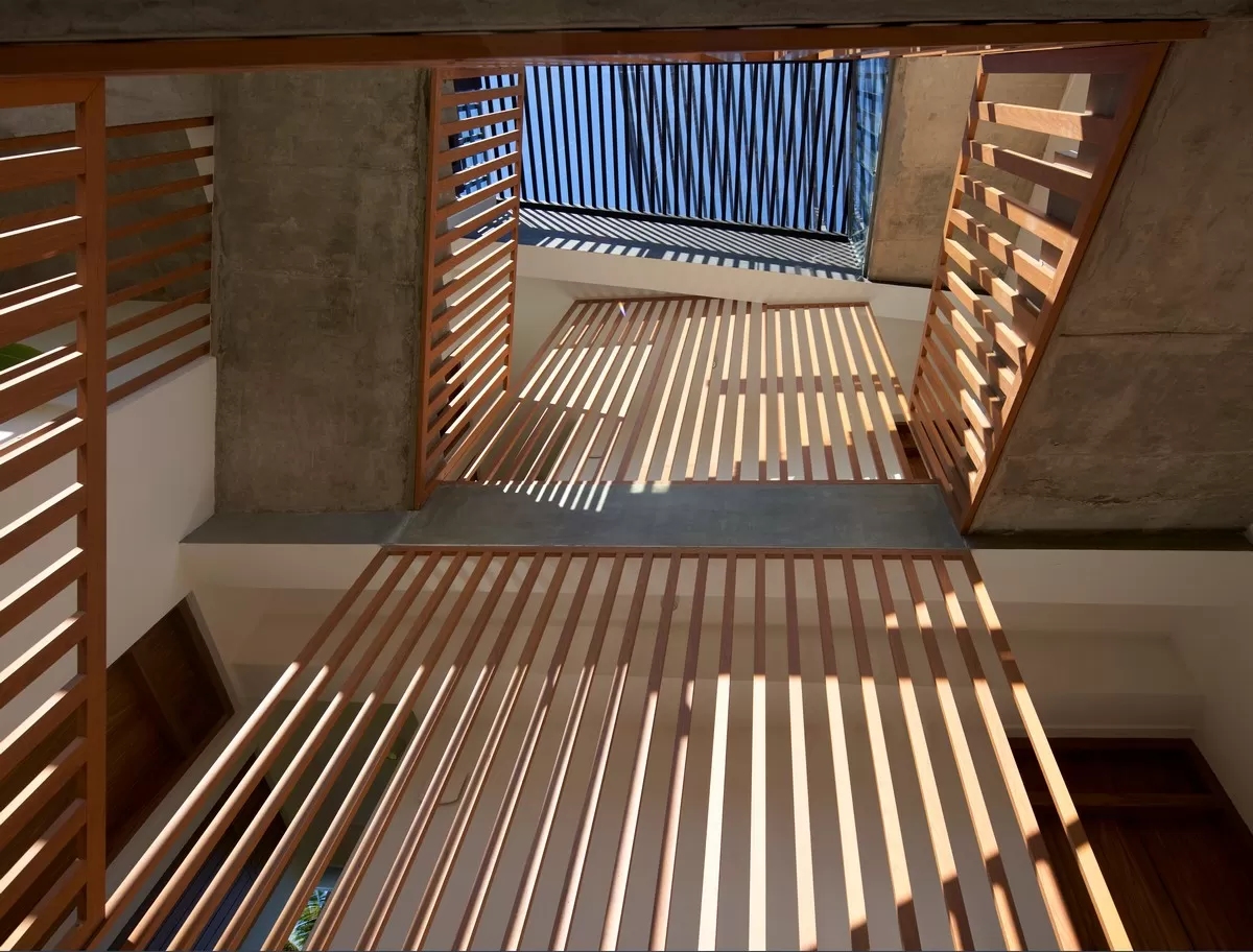 The centerpiece? A breezy, open staircase that’s less a utility and more a social invitation. Wind flows, light dances, and along the way, nooks for coffee, contemplation, or casual chat bring a sense of spontaneity to the serene structure. Natural cooling, curved concrete lines, and unfussy interiors make it both stylish and sublimely simple.