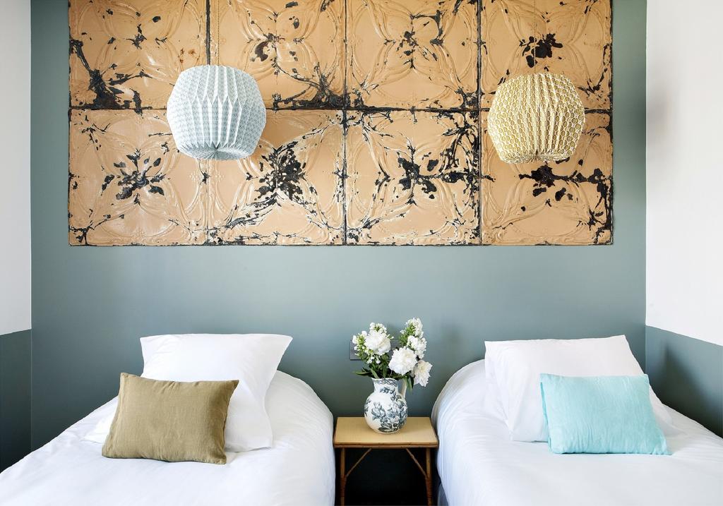Interior designer Vanessa Scoffier curated a look that feels cool, eclectic, and effortlessly lived‑in. The spaces mix mid‑century vintage gems—Platner chairs, Knoll sideboards, and 1950s Gauriche tables—with timeless contemporary pieces like Thomas Eyck pendant lights and Kvadrat textiles. The palette leans warm and neutral, offset by playful accents that give each space a distinct personality. This is a hotel that values texture and authenticity over polish; nothing feels staged or overdesigned. The interiors invite guests to touch, sit, and stay a while, emphasizing a “home away from home” atmosphere while maintaining an unmistakably design‑forward identity.