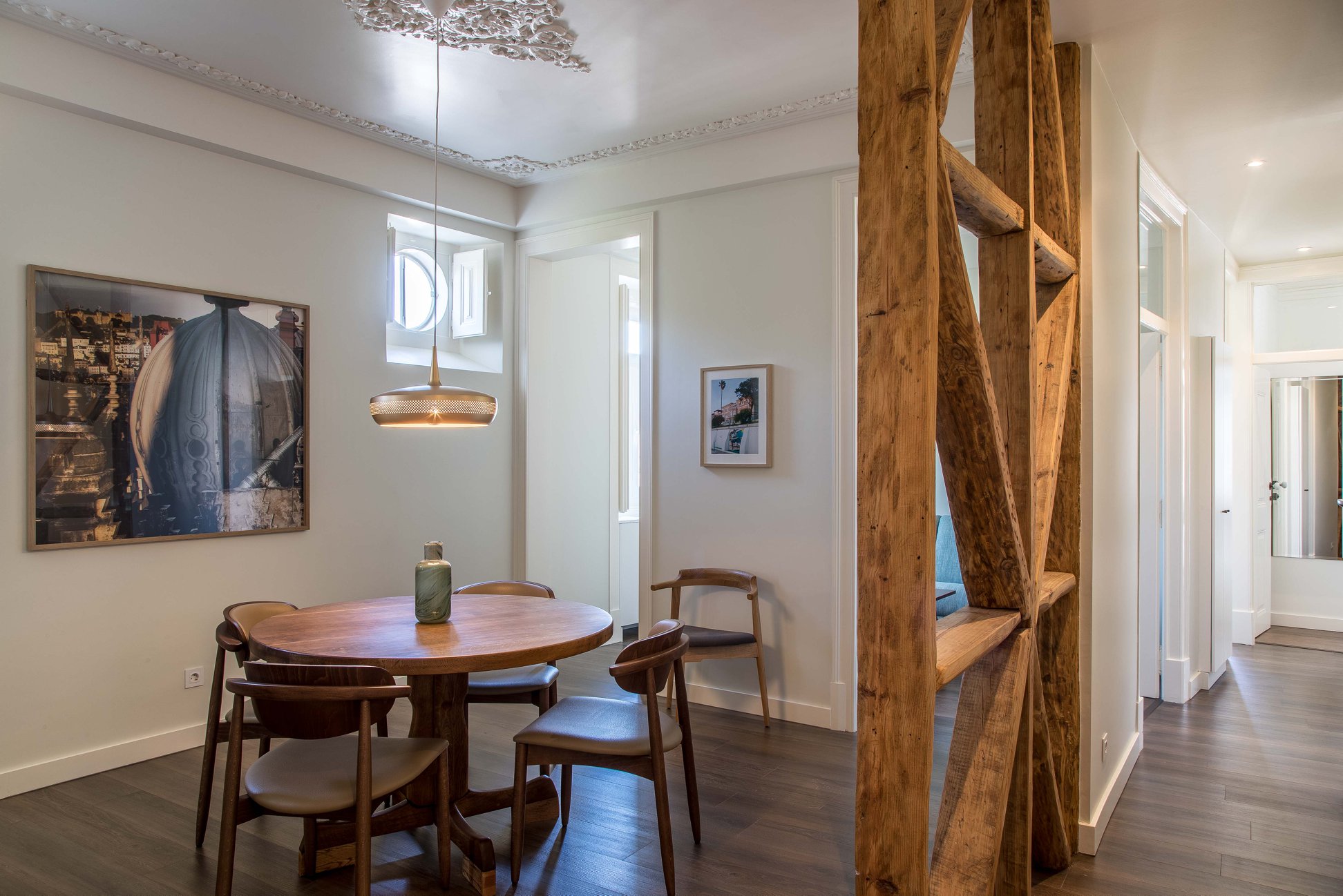 Among their restorations, Casa Chafariz stands out as a shining example of Hermitage Castelo’s ethos. Nestled in the vibrant Santos district—Lisbon’s creative quarter—this historic residence radiates character and craftsmanship. Its striking cherry-red façade overlooks the Chafariz da Esperança, a public fountain dating back to 1760 and honored as a Portuguese national monument. Inside, the design is a masterclass in harmony: original architectural details are preserved and paired with contemporary Nordic minimalism. Light woods, neutral tones, and natural textures amplify the building’s historic beauty without overwhelming it. The result is a space that feels both timeless and immediate—elegant yet relaxed, steeped in history yet alive with modern creativity.