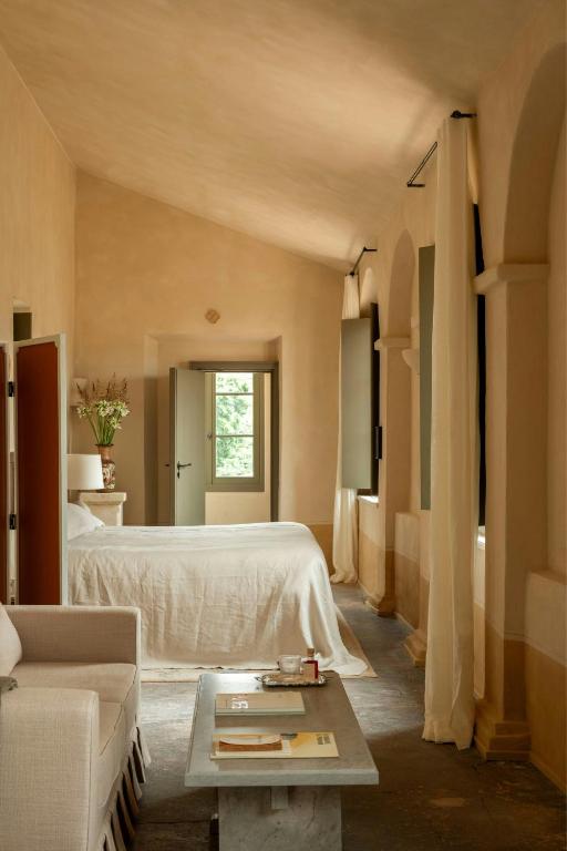 The hotel’s 88 rooms, once nun’s cells and chapter rooms, feel like quiet poems in lime plaster and muted linen. Antique pieces—sourced with care rather than trend—anchor each space in memory. There’s no excess, only elegant restraint and a calming intimacy that encourages stillness. It’s the kind of place where your shoulders drop the moment the door closes behind you.