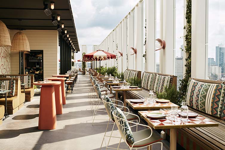 At The Hoxton, Brussels, food and drink are far more than afterthoughts—they’re central to the experience. Cantina Valentina, the hotel’s all-day restaurant, celebrates Peruvian cuisine with bold flavors and a laid-back spirit, offering everything from ceviche to charred meats and vibrant vegetarian fare. For a higher perspective—literally—head up to Tope, the rooftop taqueria and bar with panoramic city views. It’s a slice of sun-soaked Mexico above the Brussels skyline, serving perfectly spiced tacos, mezcal cocktails, and a side of serious atmosphere. As the sun sets and the city lights up, Tope becomes the ultimate spot to toast to the night.