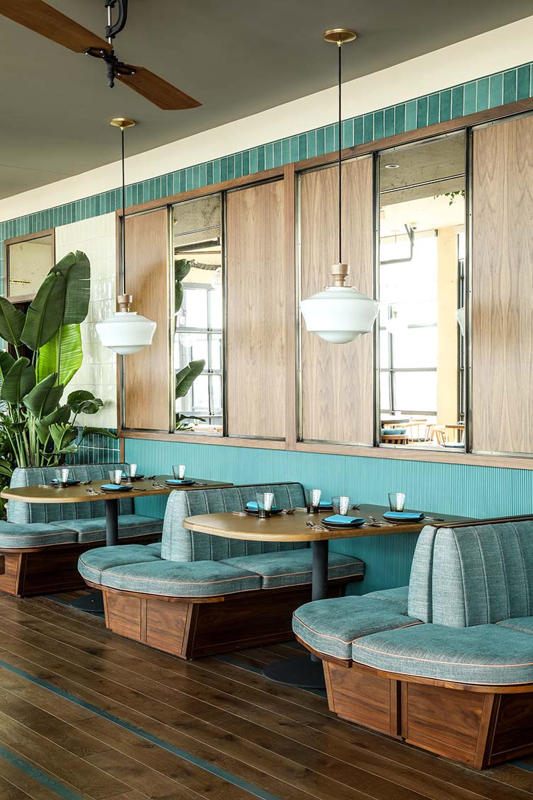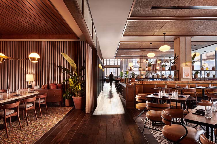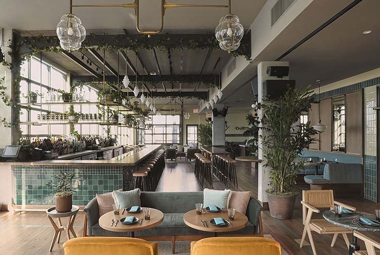 The Hoxton, Chicago takes its dining as seriously as its design. On the ground floor, you’ll find Cira, a Mediterranean-inspired restaurant from celebrated Chicago chef Chris Pandel, serving everything from mezze spreads to seasonal pastas in a warm, social setting. Head upstairs, and things get even better. Cabra, the rooftop Peruvian cevicheria from Top Chef winner Stephanie Izard, brings bright, bold flavors and panoramic city views. It’s a true Chicago favorite—whether you’re there for brunch with a side of sunshine or cocktails under the stars. Between them sits Lazy Bird, a low-lit cocktail lounge tucked in the basement that feels like a secret speakeasy. Its extensive cocktail list, plush velvet banquettes, and live jazz nights make it one of the city’s best-kept secrets (that everyone eventually talks about).
