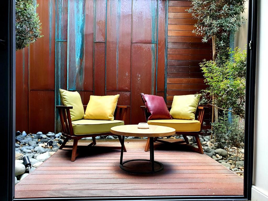 Step inside, and you’re greeted by a space that feels both authentic and fresh. The interiors blend traditional craftsmanship with modern textures—think breezy linen fabrics, cerulean blues, and warm terracotta tones that echo Cyprus’s sky and sand. Light filters through shuttered windows, casting dappled patterns across handcrafted furniture and local ceramics. It’s an atmosphere that invites you to slow down, sip something chilled, and watch the rhythm of island life unfold around you. The guest rooms continue this story with a modern Mediterranean aesthetic—muted tones, natural materials, and just a hint of seaside glamour. Some open onto private terraces overlooking the old town’s tiled rooftops; others frame panoramic sea views that remind you why the coast here is legendary.