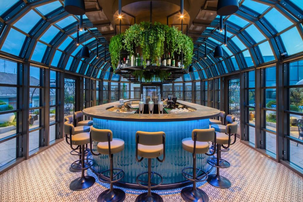 The storytelling continues at Bar Huso, where the mood shifts to something darker and dreamier. Swathed in deep, moody blues and scattered with lush greenery, this space feels like a submerged forest glade. Orb-like installations hint at aquatic life, paying homage to the Huso huso, or beluga sturgeon—an enduring symbol of abundance and strength. Outside, the courtyard is presided over by a Turul bird statue, a mythical guardian said to have guided the Magyar people to their homeland. It’s not just decoration; it’s cultural memory made physical. Throughout the hotel, Wanders’ touch remains playful yet profound. No two corners feel alike. Some are dramatic and theatrical, others intimate and hushed. Together, they weave an atmosphere that is as much about feeling as it is about form—an immersive world that lingers in the imagination long after you’ve checked out.