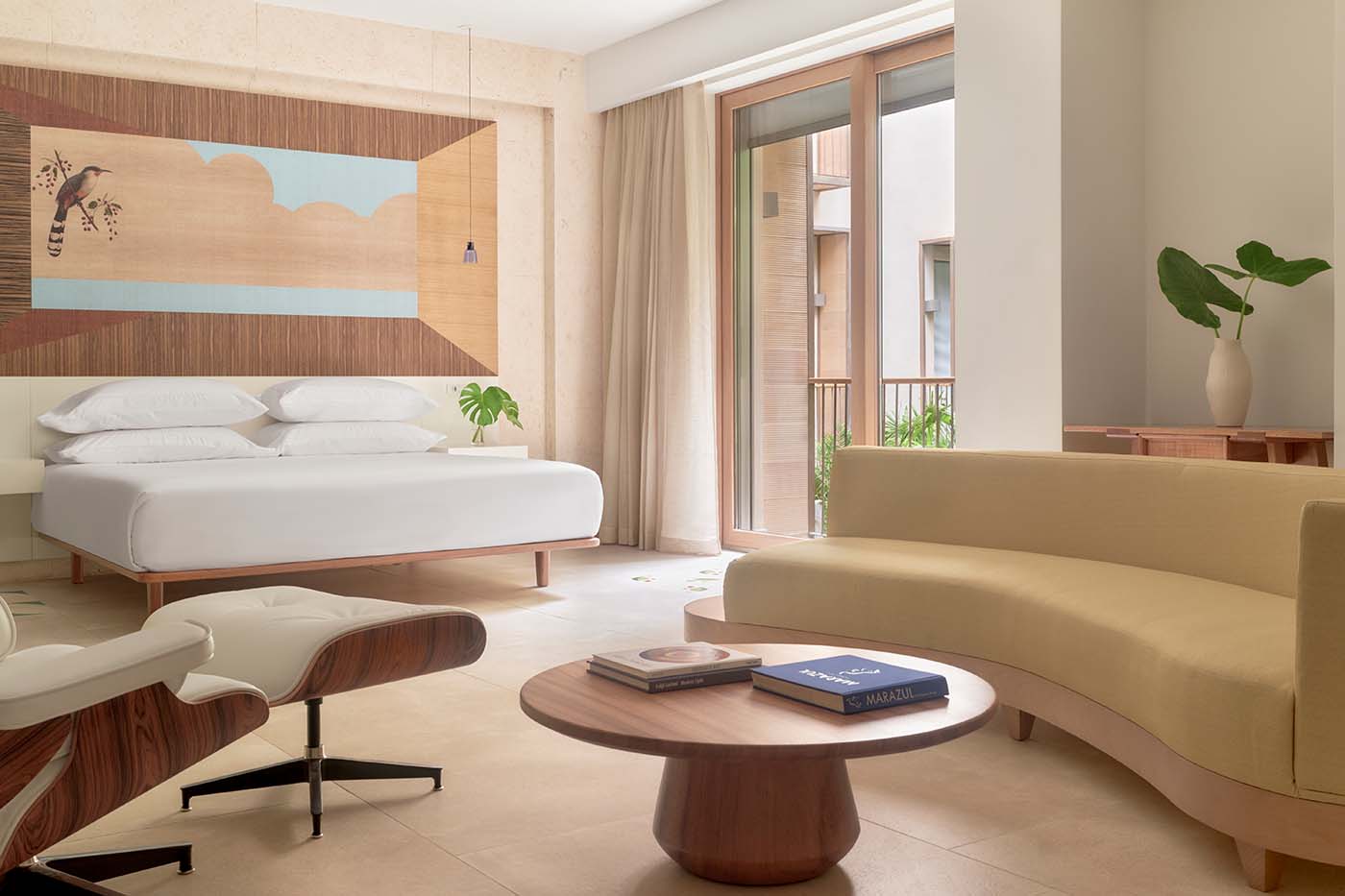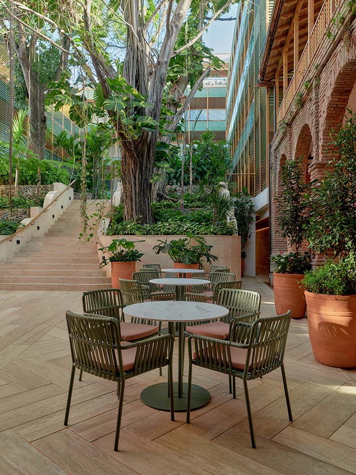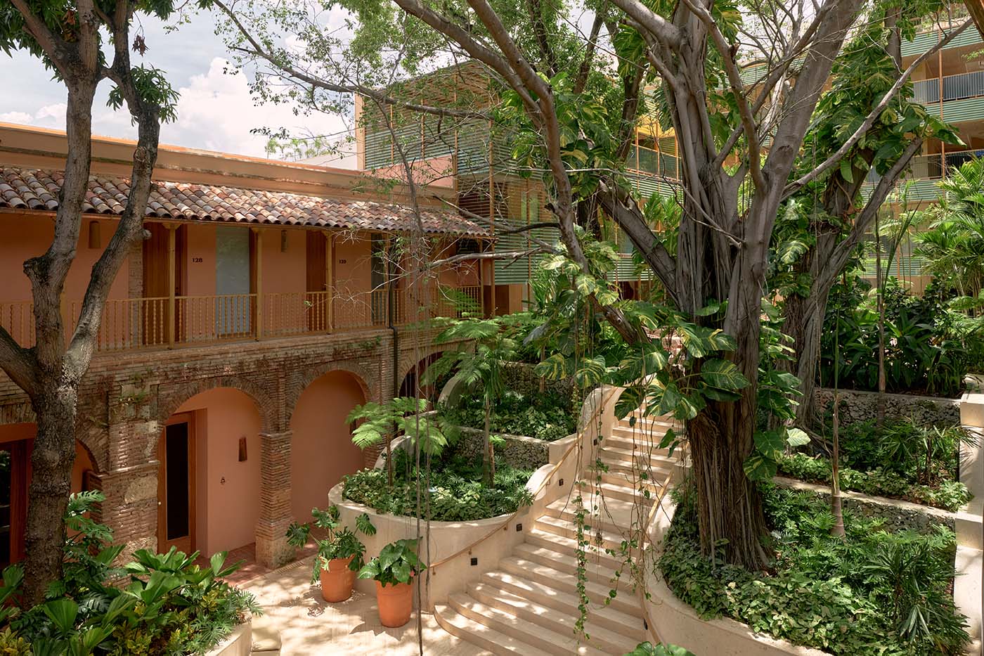Nestled in the heart of Santo Domingo’s Ciudad Colonial, a UNESCO World Heritage Site, Kimpton Las Mercedes is more than a hotel—it’s a living testament to the Dominican Republic’s layered past and vibrant present. Originally opened in 2019 and reborn under the Kimpton brand in 2024, it has quickly become an architectural and experiential landmark in the oldest European-founded city in the Americas. Set within restored 16th-century structures, the project was guided by Moneo Brock Architects, who balanced heritage and innovation with rare sensitivity. Colonial façades remain intact, while elevated modern volumes, courtyards, and lush green spaces create a fresh rhythm. Open-air corridors encourage natural light and cross-ventilation, while travertine, Dominican hardwoods, hand-cut ceramic tiles, and native vegetation root the design in authenticity and sustainability. At its heart, a central courtyard hums with life, recalling the building’s origins as a communal hub.