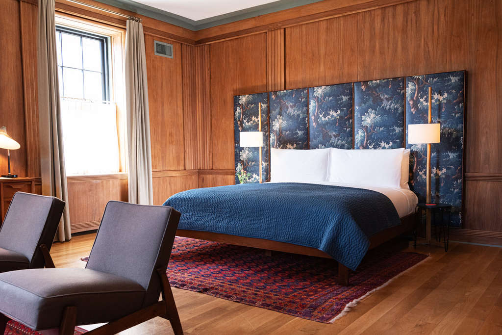 The 42 guest rooms are thoughtfully composed sanctuaries. Vintage furniture pieces, layered textiles, and bespoke art create a sense of warmth and individuality. Luxe amenities add comfort, while certain rooms feature fireplaces and soaking tubs—ideal for unwinding after a day in Kingston. It’s accommodation that captures both the romance of history and the intimacy of boutique hospitality.