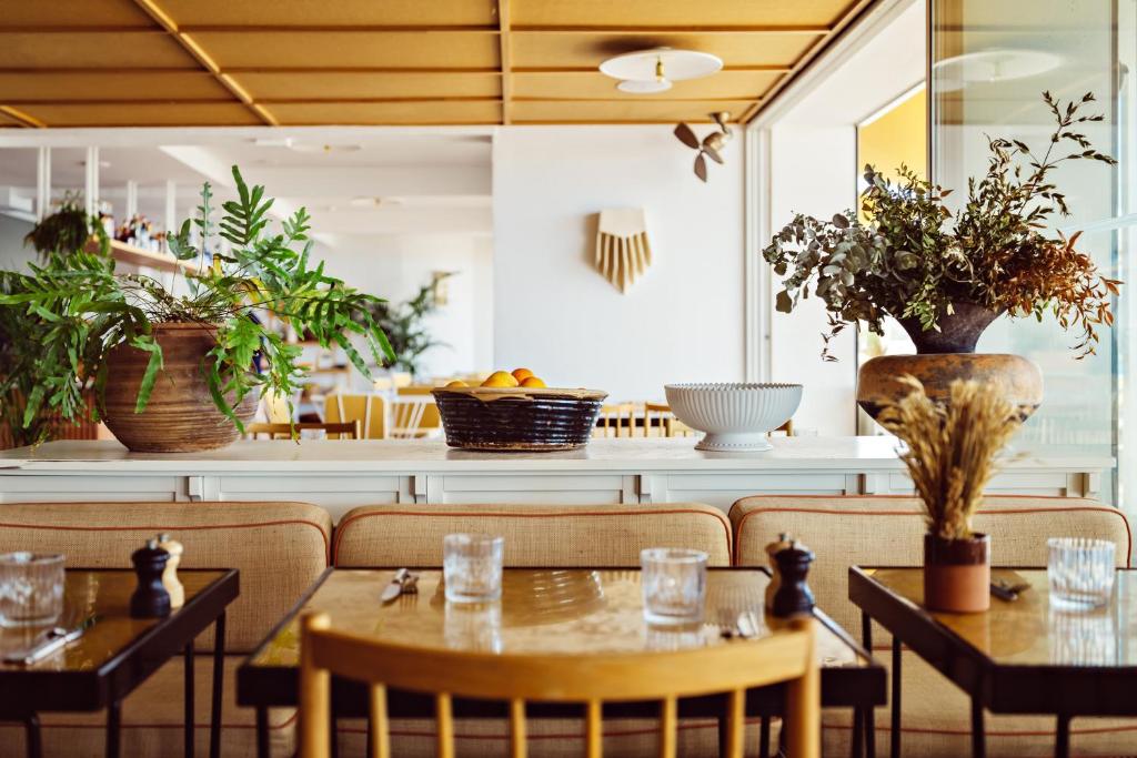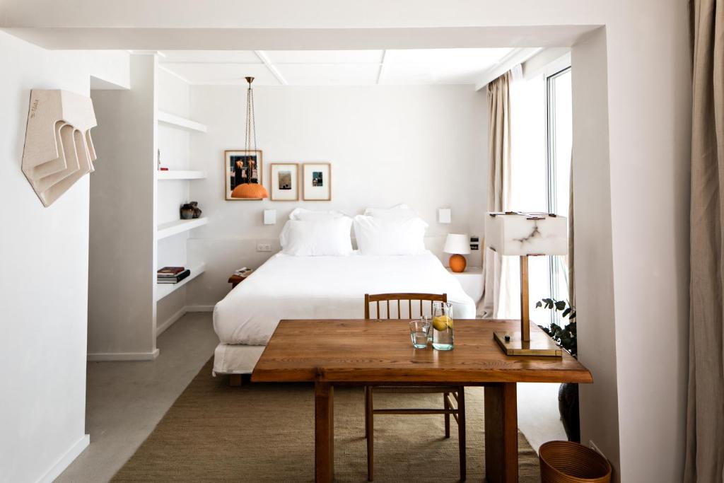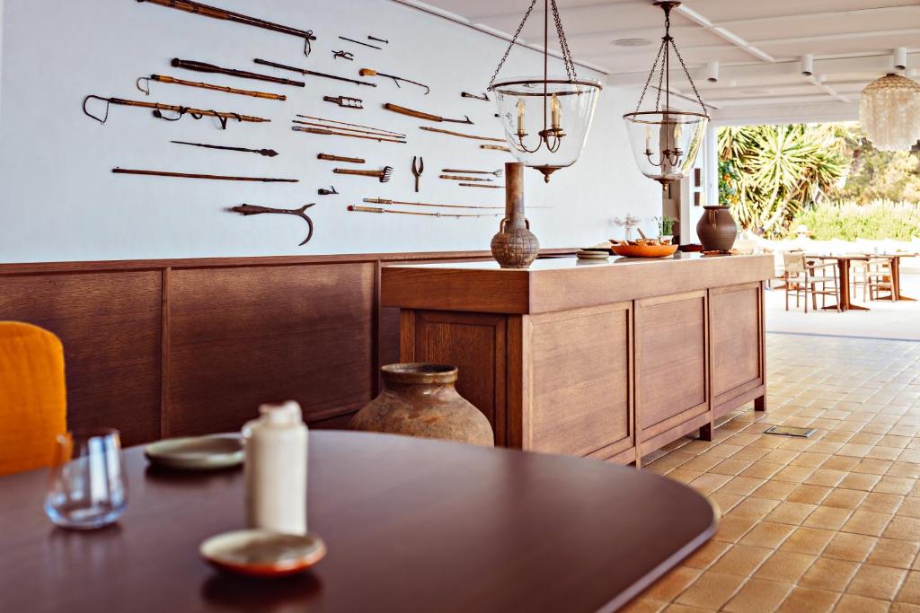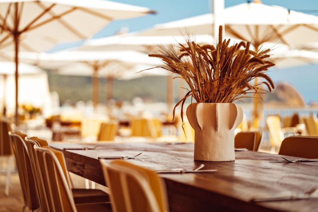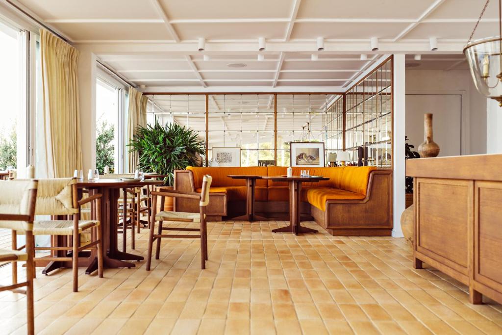 With 67 rooms and suites, most offer sea views, terraces or private gardens, and some feature freestanding Barcelona baths and bespoke wooden bar counters. Suites blend refined comfort with thoughtful touches—marble bathrooms, vintage antiques, and carefully chosen art—while all rooms foreground the coast’s effortless serenity.