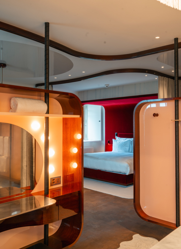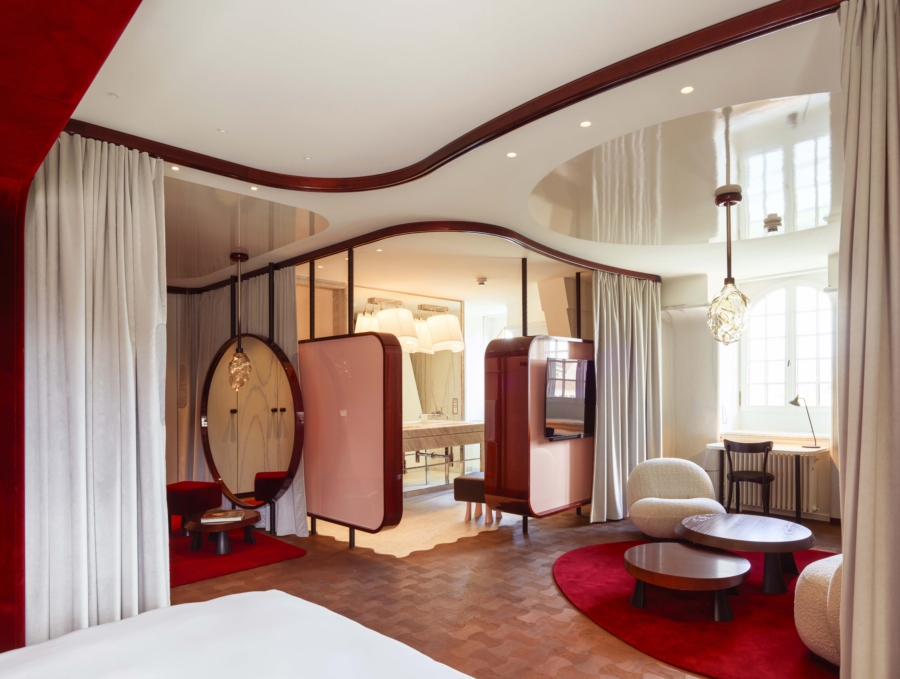 In a rare departure from their usual focus on grand cultural icons like the Tate Modern and Elbphilharmonie, local starchitects Herzog & de Meuron took on Les Trois Rois as a passion project—one close to home. ‘I love to come here with my wife for a drink at the bar,’ Jacques Herzog told Wallpaper* Magazine. The studio reimagined a former bank next door into a new five-floor expansion, complete with a dazzling rooftop spa, a show-stopping riverfront restaurant and bar, a versatile function room, and spectacular new suites—including the 240 m² Les Trois Rois presidential suite, with flowing interiors, circular living spaces, and curtain-divided bedrooms bathed in light.