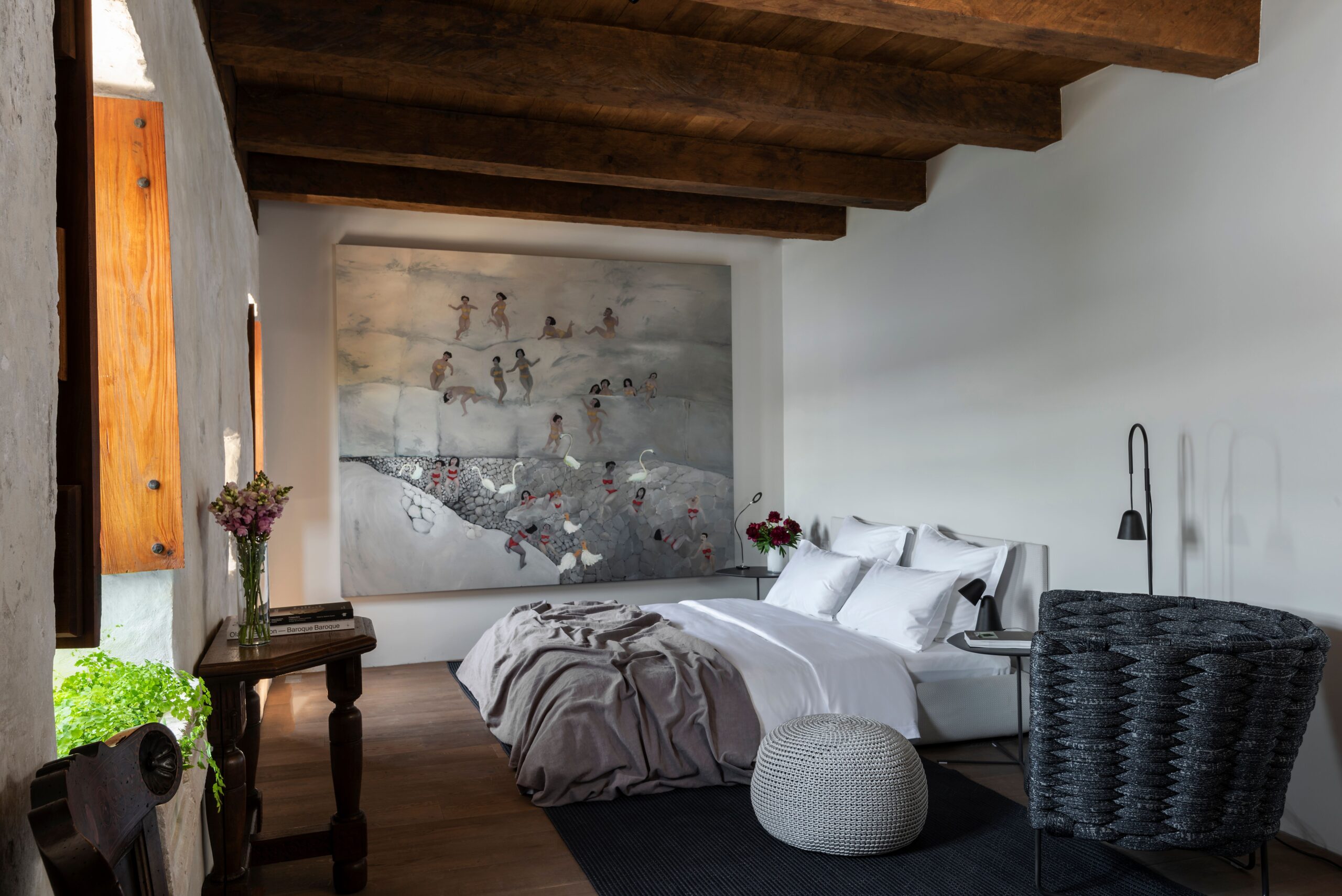 From the moment you enter, time seems to dissolve. Stone corridors, arched cloisters, and sun-washed courtyards whisper the stories of centuries gone by. Yet, there’s nothing dusty or frozen here—each space hums with quiet life. Antique frescoes and carved beams coexist with bespoke modern furnishings, while museum-grade artworks curated from the Thyssen-Bornemisza collection adorn the walls. Light and air play a central role, dancing across textures that have endured for generations. The effect is meditative—ancient stone softened by linen, shadow balanced by flame, faith translated into form.