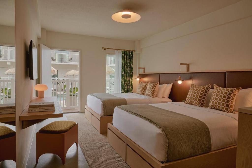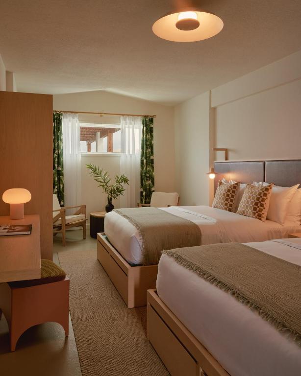 Austin-based Kartwheel Studio handles the design — and the rooms feel like micro beach bungalows: bright, breezy, cheerful, and edited. A handful of the larger rooms catch views of the pool and the Gulf, a reminder that the ocean here is never just backdrop — it’s the central protagonist. The color palette is sunny and soft, the energy relaxed. Hotel Lucine feels like staying with stylish friends who throw the best parties and make the best playlists.