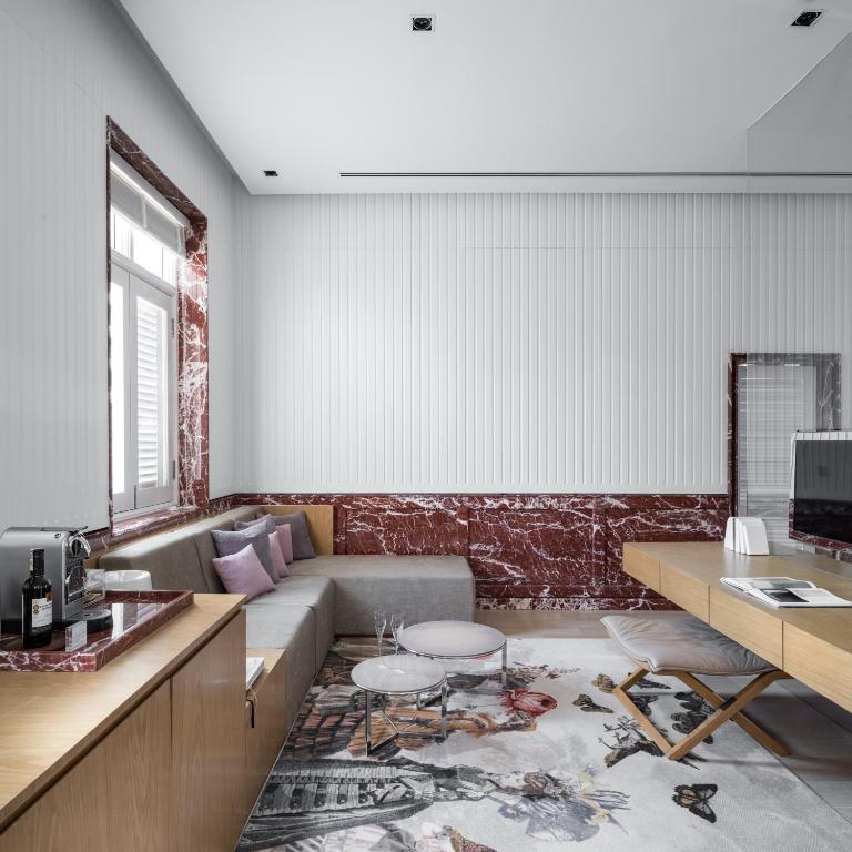 Inside, Seah’s approach blends narrative, artistry, and architecture into a seamless whole. The restoration lovingly preserves original columns, staircases, archways, and decorative moldings, yet overlays them with unexpected textures—chrome canopies, sculptural art, mirrored panels, and copper-clad installations. A video artwork animates the reception area, while curated contemporary pieces pop against the mansion’s historical bones. The interplay of old and new feels effortless, as though both eras always belonged together.