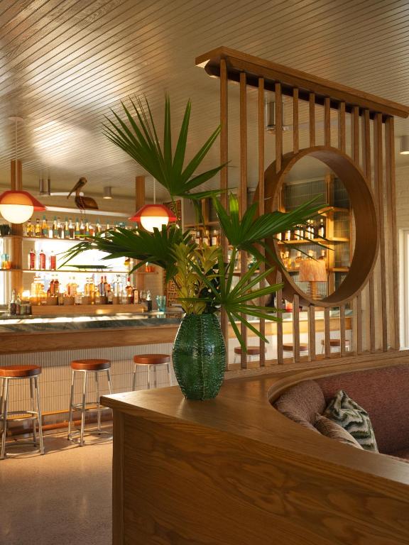 And when day turns to night, the Moon Garden takes over — a sunken fire pit flickering in the open air. That’s when the hotel becomes something else entirely — less motor lodge nostalgia, more modernist moon ceremony.