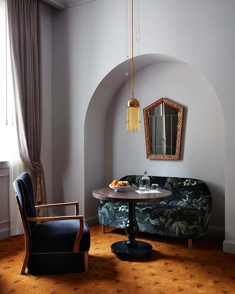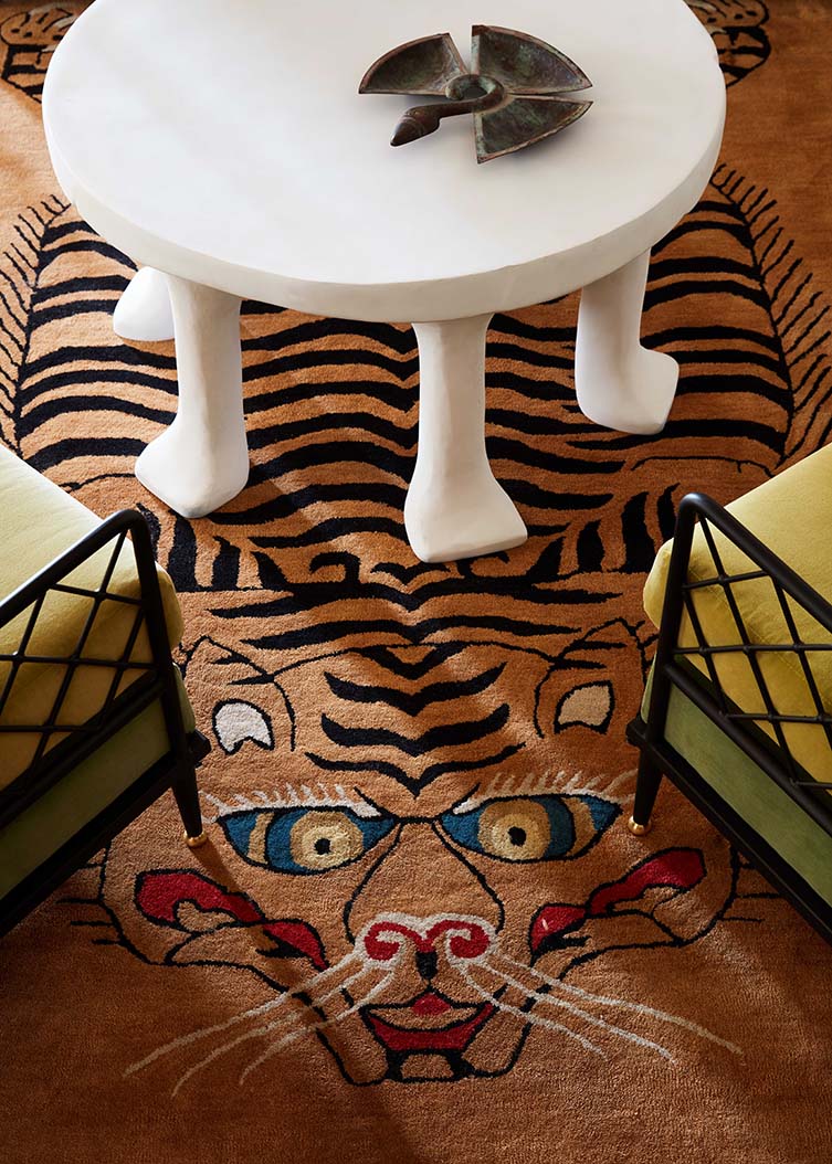 The interiors are a quietly hypnotic mix: New Orleans-sourced antiques side-by-side with custom contemporary pieces. Every surface, pattern, and vignette has intention. Bespoke wallpapers frame Christopher Farr x Shamshiri rugs, while paintings and sculpture by local artists point the narrative forward: this is a new NOLA aesthetic—more cerebral, more collected, more curated. This is a hotel you don’t “stay in,” you decode.