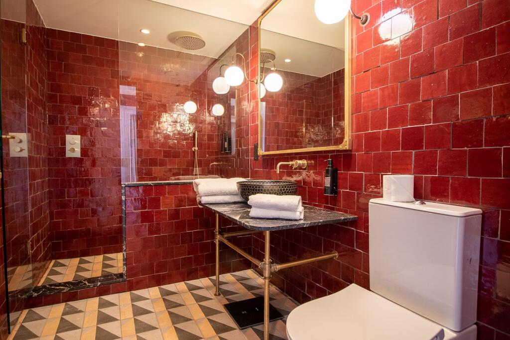 Inside, the vibe is boho-meets-boutique, with exposed brick, bespoke joinery, and bold contrasts that celebrate both structure and softness. Rooms are filled with plush textures and precision details: