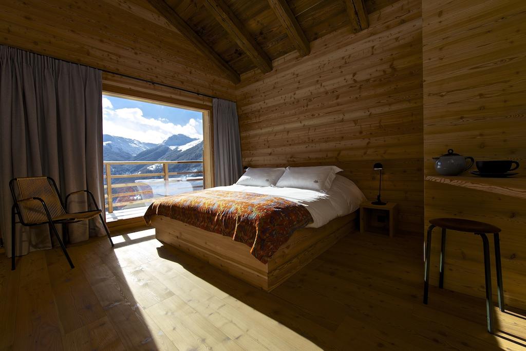 Whether you’re here for yoga, silence, hiking, or deep conversation over a bottle of biodynamic wine, Commeire invites a slower rhythm. No lobby music, no digital clutter—just space, light, and sweeping views of the Mont Blanc massif. Guests can stay in private chalets or restored barns, each with its own quiet personality. Communal spaces feel more artist residency than hotel, with wood-burning stoves and long tables built for lingering.