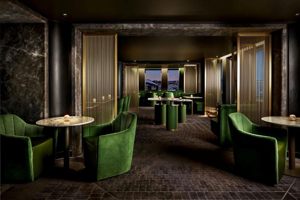 “Muir,” meaning “the sea” in Scottish Gaelic, is no accident. This name speaks directly to the hotel’s soul. Designed by the celebrated firm MacKay-Lyons Sweetapple Architects, the building draws from Nova Scotia’s shipbuilding traditions, with a bold, angular silhouette clad in sandstone and Muntz metal. Inside, the narrative continues through Studio Munge’s richly detailed interiors: think oak paneling, locally quarried granite, and custom-crafted furnishings made in Canada. Original artwork from Nova Scotian artists adorns every room, grounding guests in the local culture from the moment they arrive.