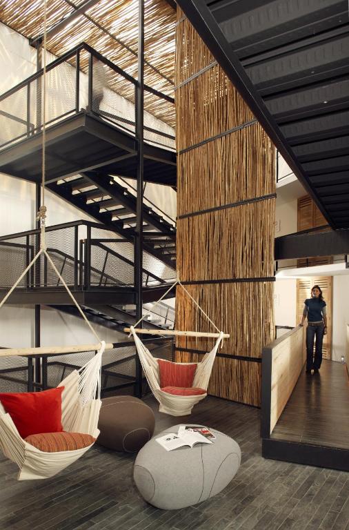 Inside, the atmosphere strikes a balance between adventure and ease. The double-height lobby is lined with travel tomes, maps, and books on Patagonia’s flora, fauna, and folklore. Floor-to-ceiling windows flood the space with southern light, framing the ever-changing hues of the fjord beyond. Each floor features intimate common areas—lounges filled with hammocks, leather armchairs, and wool throws that invite guests to unwind, journal, or simply gaze at the dramatic weather rolling in from the mountains. It’s the kind of place where conversations start easily, and where time slows down just enough to remind you that the best journeys aren’t rushed.