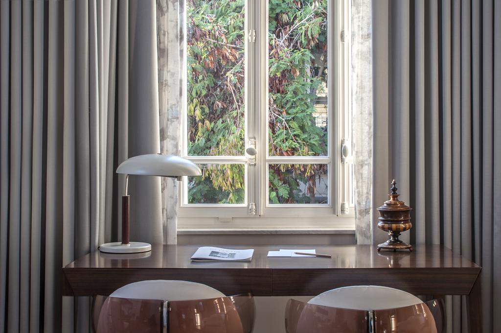 Inside, The Norman’s design reflects a quiet grandeur. A muted palette of creams, blues, and greys complements oak parquet floors and vintage-inspired furnishings. Carefully curated Israeli artwork lines the walls, giving each corridor and room a gallery-like feel. Details matter here: hand-painted frescoes in the stairwell, bespoke lighting fixtures, and artisanal textiles that nod to both European tailoring and Middle Eastern craft.