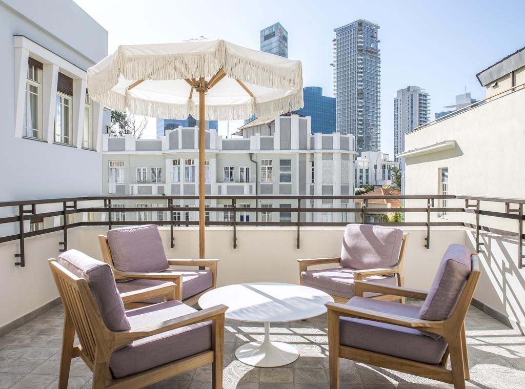 The 50 rooms and suites range from cozy retreats to sprawling penthouses with private terraces overlooking the city. Each is individually designed, but all share an intimate elegance: plush beds with Frette linens, Carrara marble bathrooms, and custom wood furniture. A neighboring residence wing offers extended-stay apartments, designed with the same attention to craft and style, ideal for longer immersions in Tel Aviv’s rhythm.