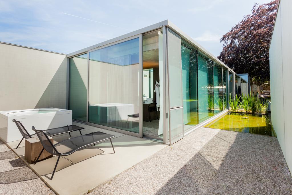 Approaching Pure Hotel, you might mistake it for an extension of its surroundings—a low-slung, modernist pavilion quietly embedded within a lush garden anchored by a 200-year-old beech tree. Its beauty lies in understatement. Wide glass walls reflect dappled light, while clean architectural lines invite nature inside. Step through its doors and you enter a realm of intentional calm. There’s no unnecessary ornamentation, no visual noise—just soft light, tactile materials, and a design language that celebrates air, silence, and proportion. The effect is instant tranquility: the kind of peace that feels designed, not discovered.