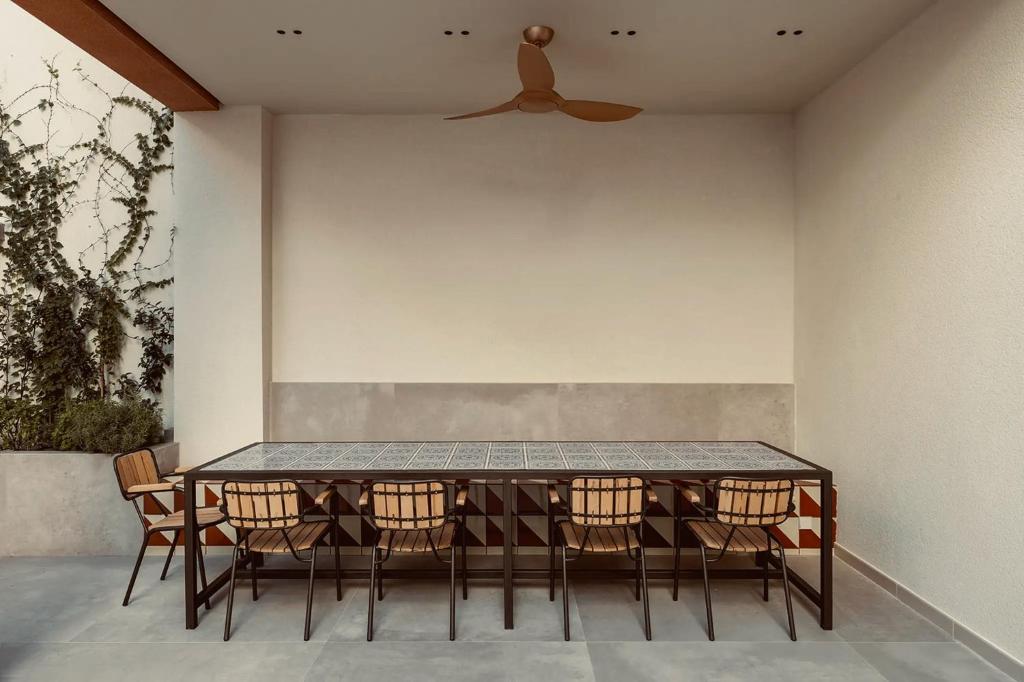 Guest rooms are calm, elegant retreats, featuring soaring ceilings, warm tones, and a harmonious mix of vintage and contemporary touches. A charming patio serves as the property’s social heart, inviting guests to linger with a cocktail and soak in the ambiance of this thoughtfully composed haven.