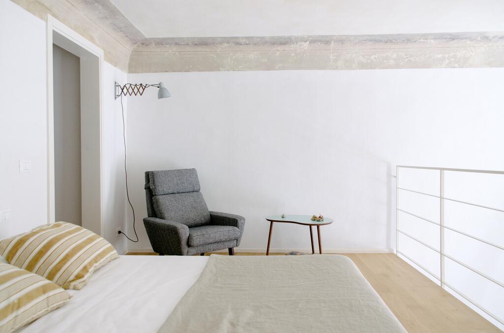 Step through the vaulted corridors and you’ll find yourself in spaces that feel simultaneously ancient and modern. The interiors are stripped back to their essentials—bare plaster walls, soaring ceilings, and vast windows that flood the rooms with soft Tuscan light. This minimalist framework becomes a stage for vintage European furniture, handpicked from Italy, France, Spain, and the UK, each piece chosen not for uniformity but for soul. The design language is pure Andrew Trotter: Scandinavian restraint meets Mediterranean warmth, softened by natural textures and imbued with a palpable sense of calm. It’s a meditation in light and proportion—a place that breathes. Every apartment is unique, yet together they tell a cohesive story—one that honors Florence’s Renaissance legacy while embracing a distinctly contemporary rhythm.
