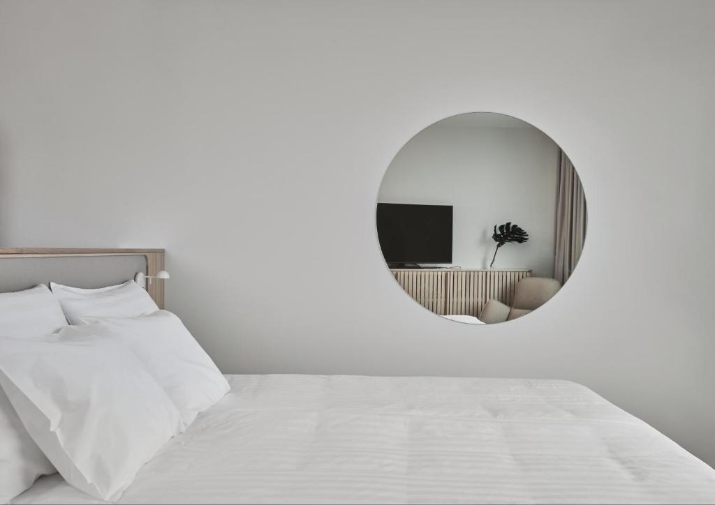 Step through the doors and the shift in mood is immediate. The interiors are bright and airy, infused with natural light, soft wood, and minimalist Nordic aesthetics that make even the busiest traveler slow down. Public spaces are designed to feel open yet intimate, with warm tones, clever lighting, and thoughtful seating areas perfect for catching up on emails—or just people-watching with a coffee. Rooms continue the theme: simple, functional, and soothing, with everything you need and nothing you don’t. Large windows frame views of the evolving cityscape, grounding you in the urban energy while keeping it at a comfortable distance.