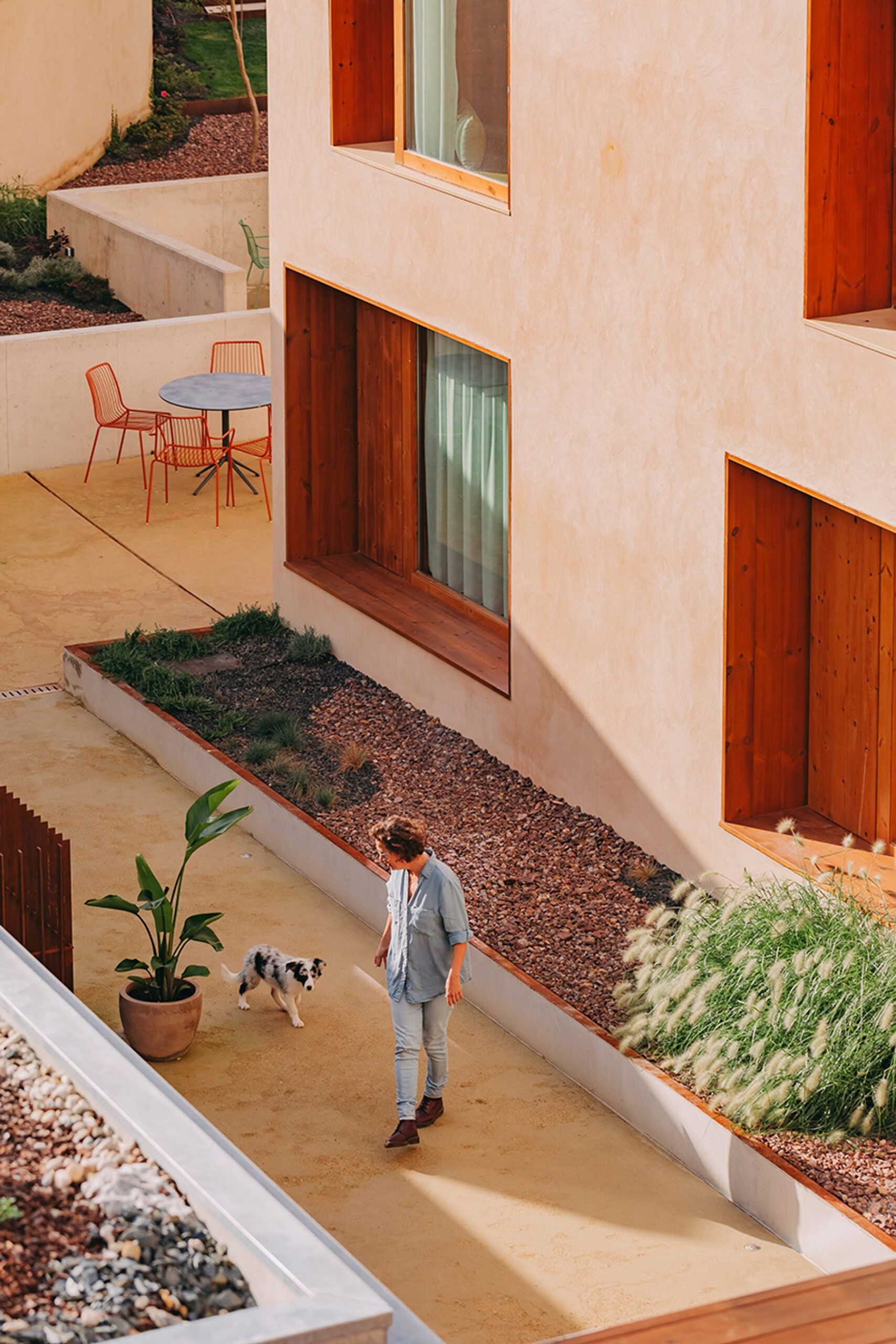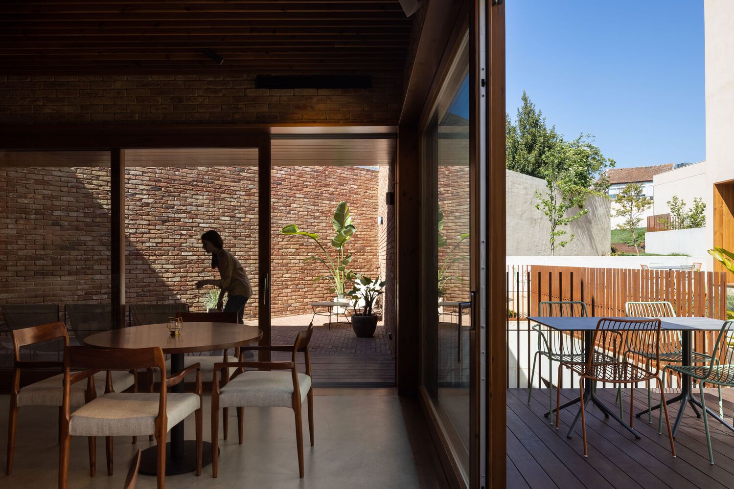 Outsite Porto Mouco is what happens when you don’t just renovate a warehouse — you reassign its purpose. The former electrical components factory sits near Campanhã Station — an area that’s always been more “moving parts” than “destination.” Arquitectos Aliados saw that as opportunity. Their intervention doesn’t romanticize the industrial past, it strips it to essence: concrete, lime mortar, brick, timber — and then adds intimacy and vegetation until the roughness becomes atmosphere. It’s a modern Porto archetype: honest materials, zero fuss, maximum identity.