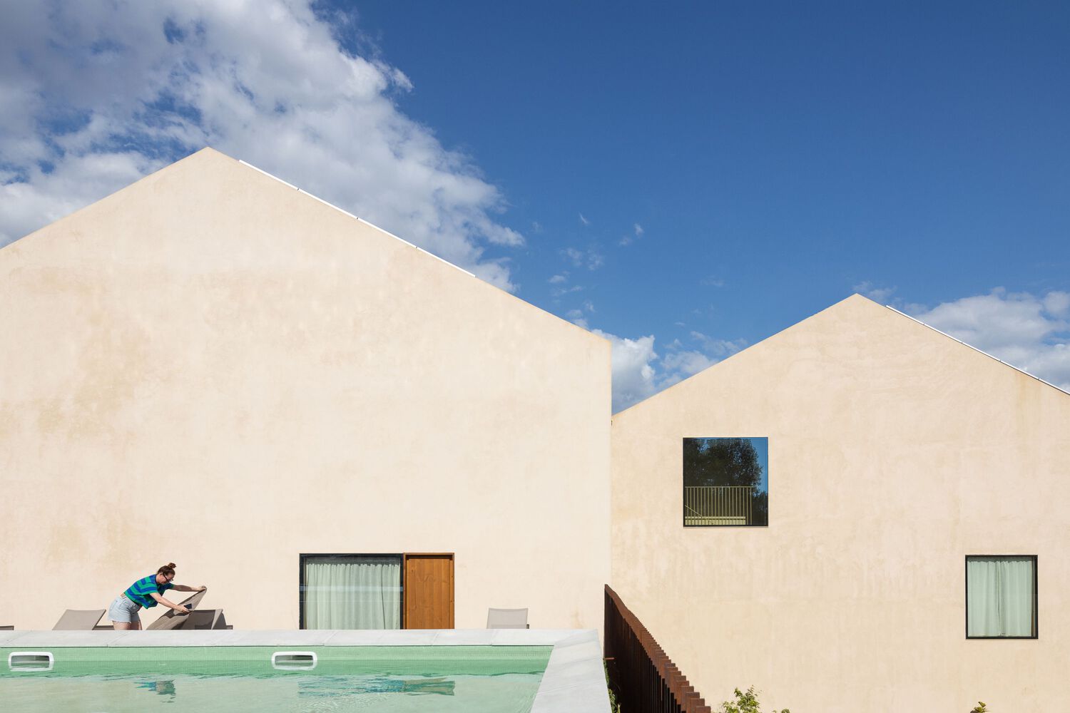Rooms are minimalist — but not ascetic. Warm materials keep the industrial architecture from feeling cold. And outside, the garden becomes the soft counterpoint — a green buffer that dissolves the city’s noise into slow motion. The pool sits like a punctuation mark — a punctuation of pleasure — reminding you that even in a place born from work, rest is a serious part of the program.