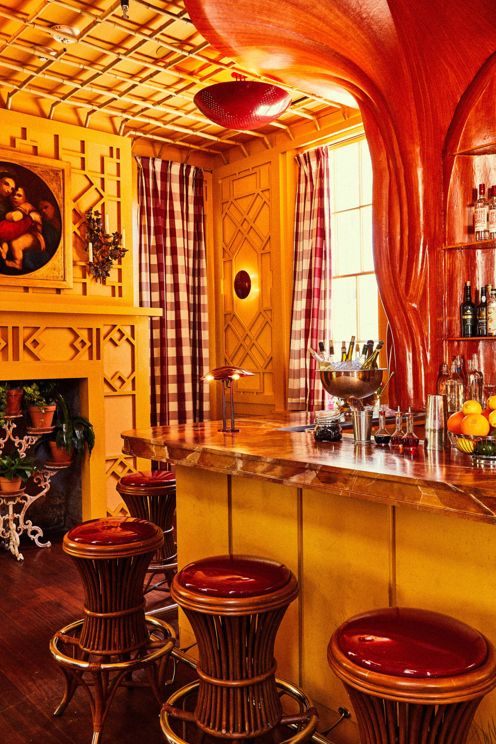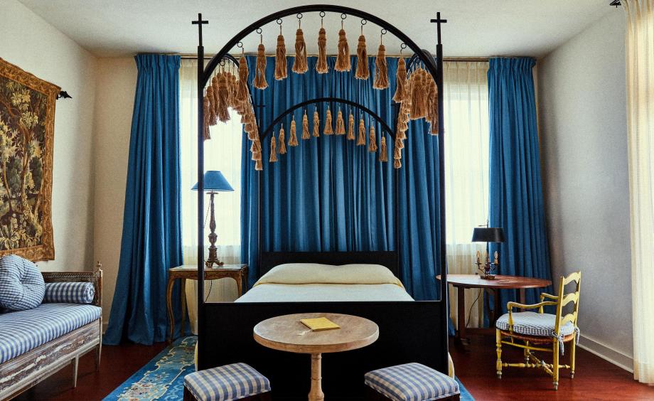 Hotel Peter and Paul is four 19th-century buildings — a church, rectory, schoolhouse, and convent — turned into one of the most intoxicating design hotels in America. Original bones — cypress wood moldings, marble fireplaces, French windows — remain proudly visible. But the interiors are now layered with provocative references: European altarpiece color palettes, African religious iconography, antique chandeliers, custom Indian rugs underfoot, hand-shaped sconces, trompe-l’oeil murals. The tension between sacred heritage and contemporary sensuality is calibrated with extreme precision — reverent but subversive, elegant but quietly mischievous.