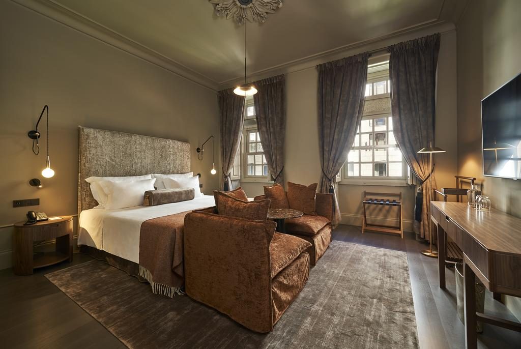 Rooms and suites carry the same careful balance. Expect exposed stone walls beside polished finishes, high ceilings beside bespoke lighting, and large windows that open onto Porto’s timeless streetscapes. Some rooms face the tranquil courtyard, others the rooftops and steeples of the city, but all share a sense of rooted calm. This isn’t luxury that overwhelms—it’s luxury that listens.
