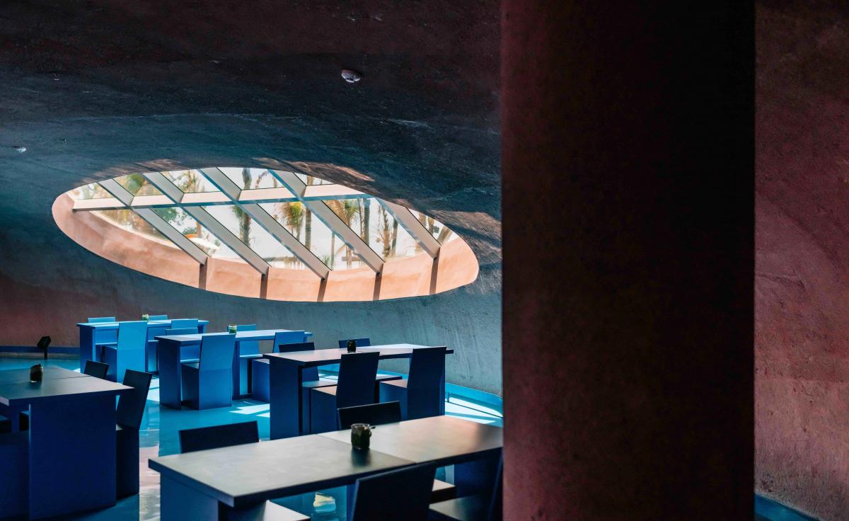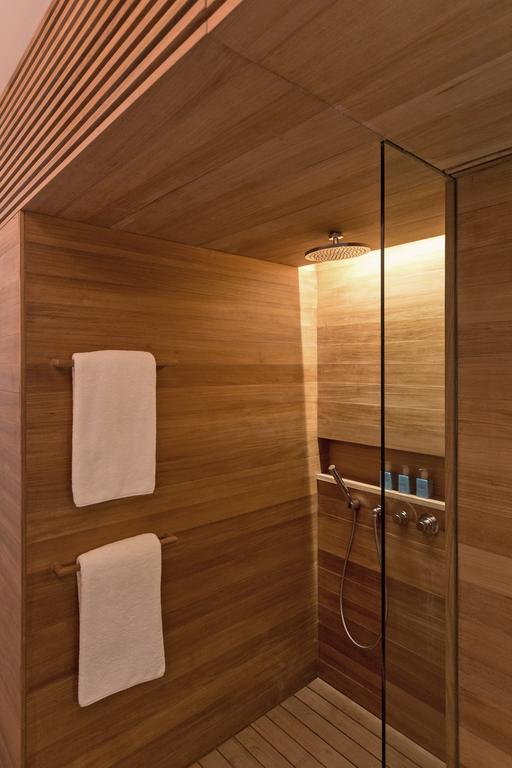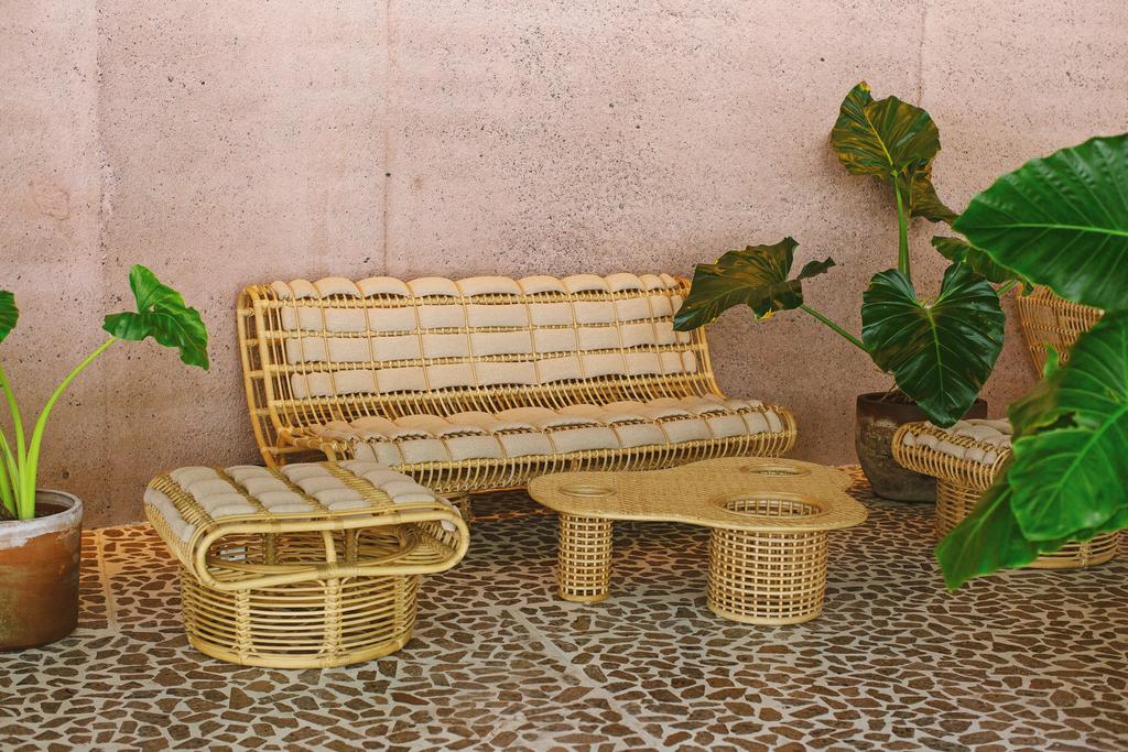 Inside the guest rooms, form meets function in quietly radical ways. Modular teakwood beds, Max Lamb-designed furnishings, and volcanic glass accents showcase a design language born from waste, reborn as beauty. Chairs made from compressed ocean plastic, glassware blown from volcanic sand, and textiles crafted from upcycled fibers prove that sustainability doesn’t need to sacrifice sophistication—it can define it. The spaces feel more like creative studios than traditional hotel rooms—places to think, to rest, to imagine.
