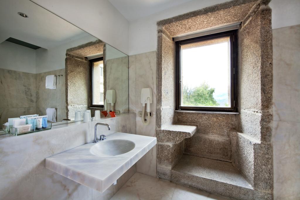Each of the Pousada’s 32 rooms is an essay in elegance and restraint. Original masonry walls frame minimalist interiors—simple furnishings, white linens, and subtle textures that echo the landscape outside. The windows, once cloistered, now open onto sweeping views of the Cávado River valley, bringing nature into the rhythm of the building. This is luxury defined not by opulence, but by clarity and contemplation.