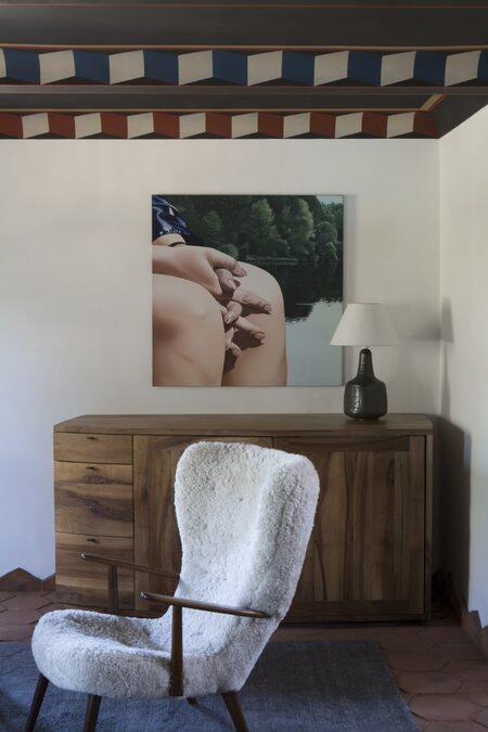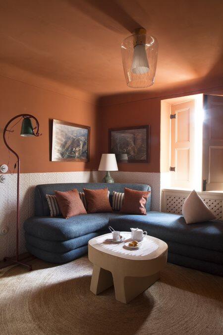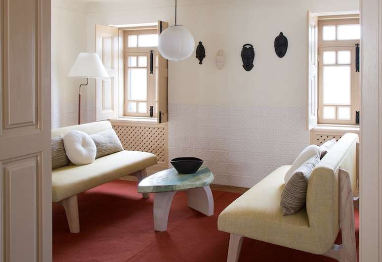 Yovanovitch’s architectural intervention is subtle and soulful. The 18th-century manor and its outbuildings have been restored with uncompromising respect for place, marrying rustic tradition with modern finesse. Granite walls and timber beams remain proudly exposed, while light filters through shuttered windows onto clay floors, Portuguese ceramics, and handwoven textiles. Inside, eight rooms (four in the main house, four in the outbuildings) radiate understated elegance. Each space feels personal—whitewashed walls, artisanal tilework, embroidered linens, and design pieces that mix rural simplicity with quiet sophistication. Local craftsmanship is everywhere: custom rugs, handmade pottery, lithographs, and natural materials that reflect the surrounding valley. It’s luxury without spectacle—intimate, grounded, and exquisitely real.