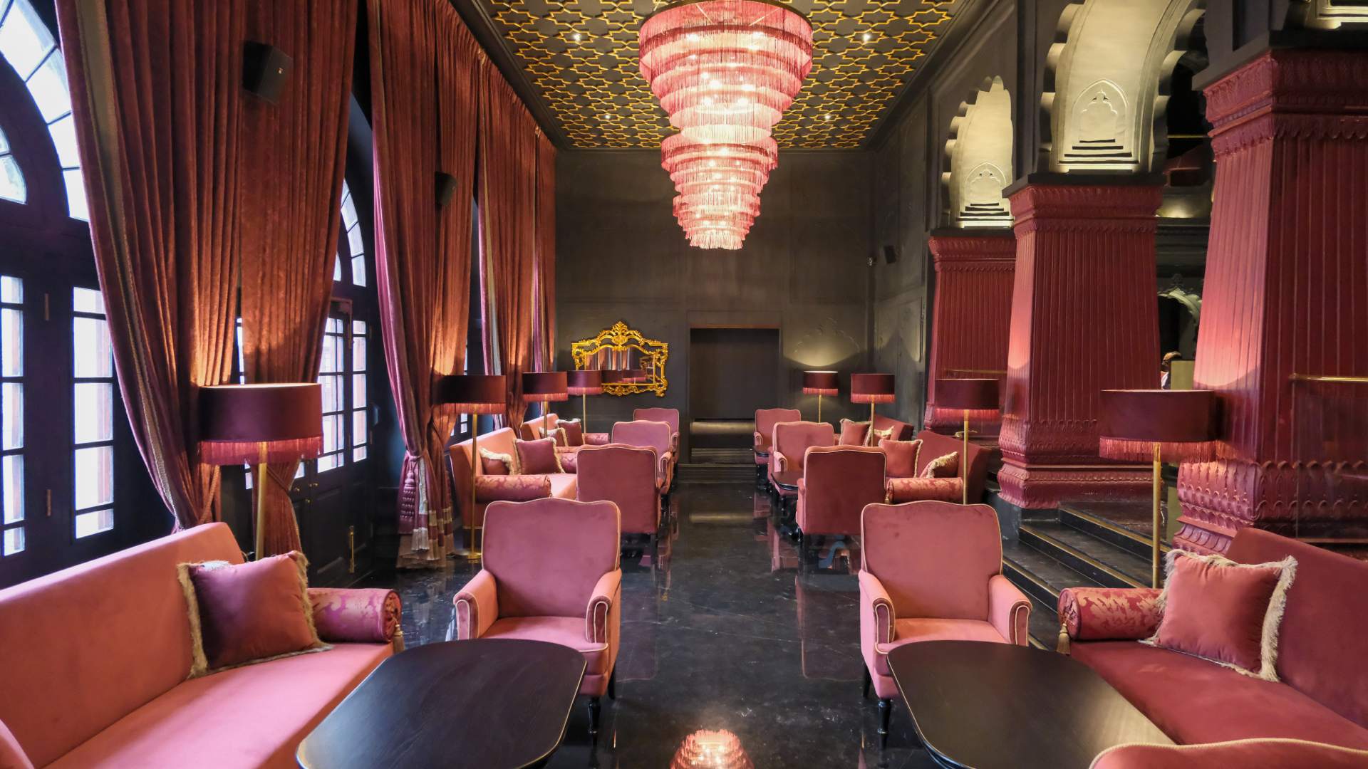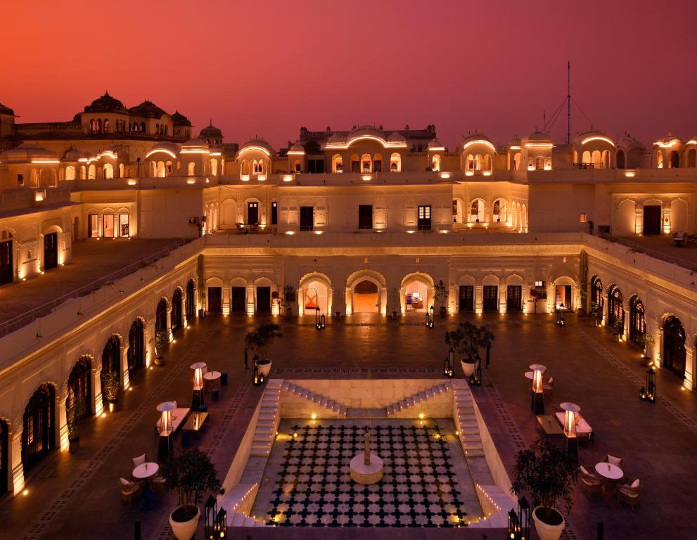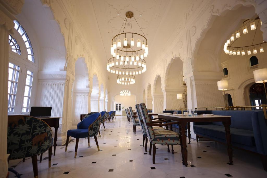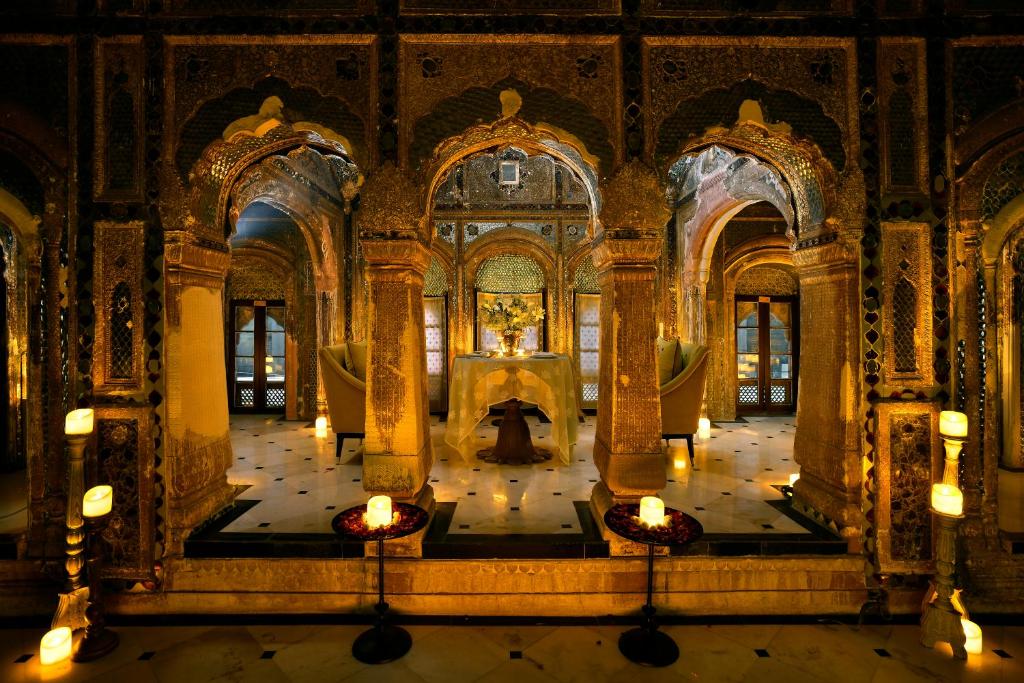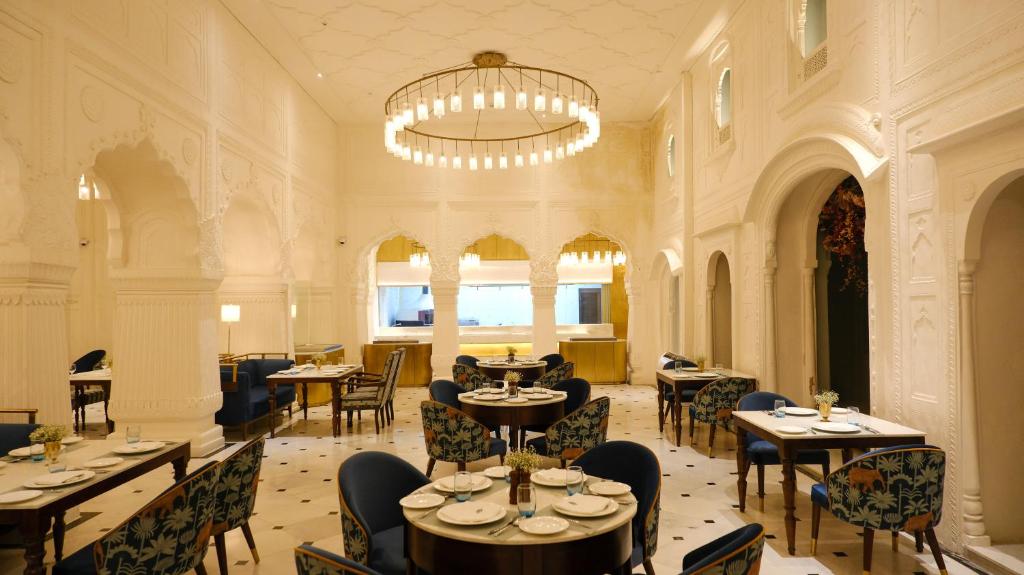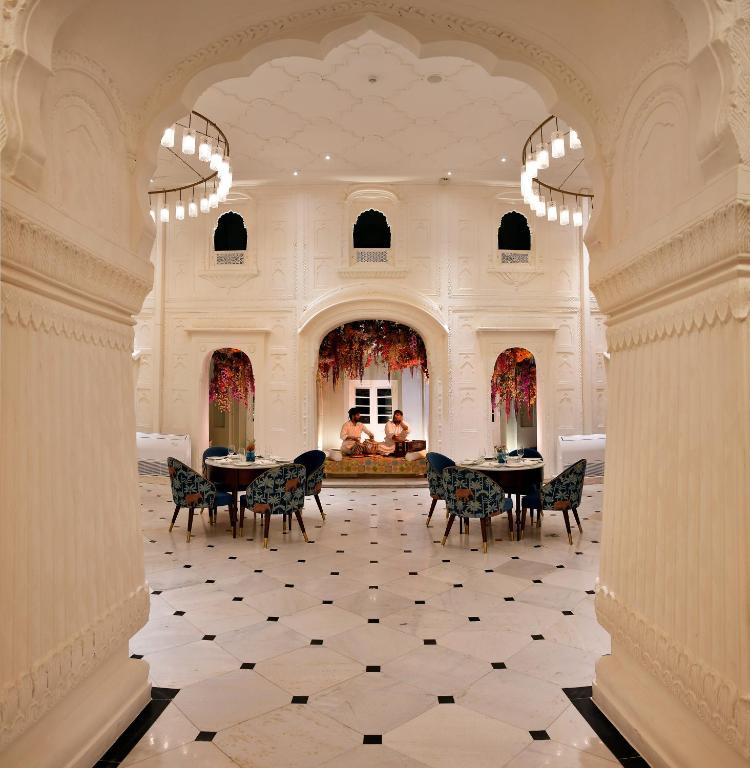 At Neel, the palace’s all-day dining room, global flavors meet regional soul. Locally sourced Punjabi ingredients are elevated into contemporary dishes, served under soaring Mughal arches and shimmering chandeliers. Breakfast might bring masala-spiced shakshuka with warm kulchas; dinner could be a delicate biryani perfumed with saffron and rose, plated like art.