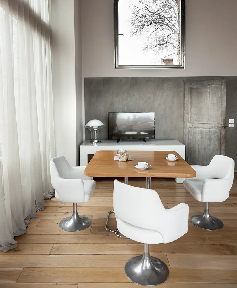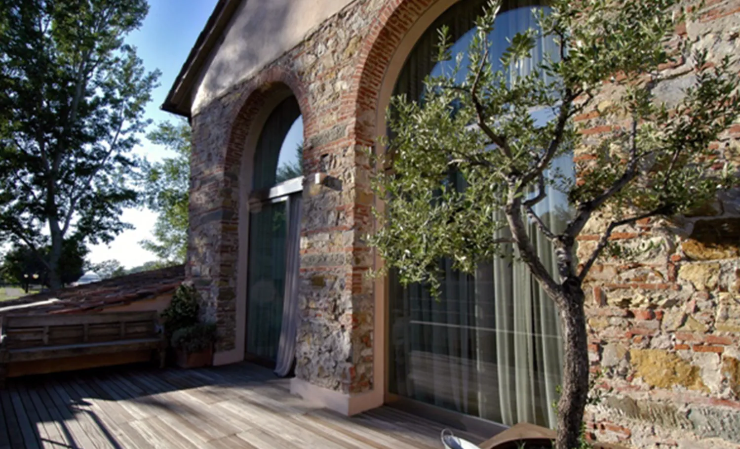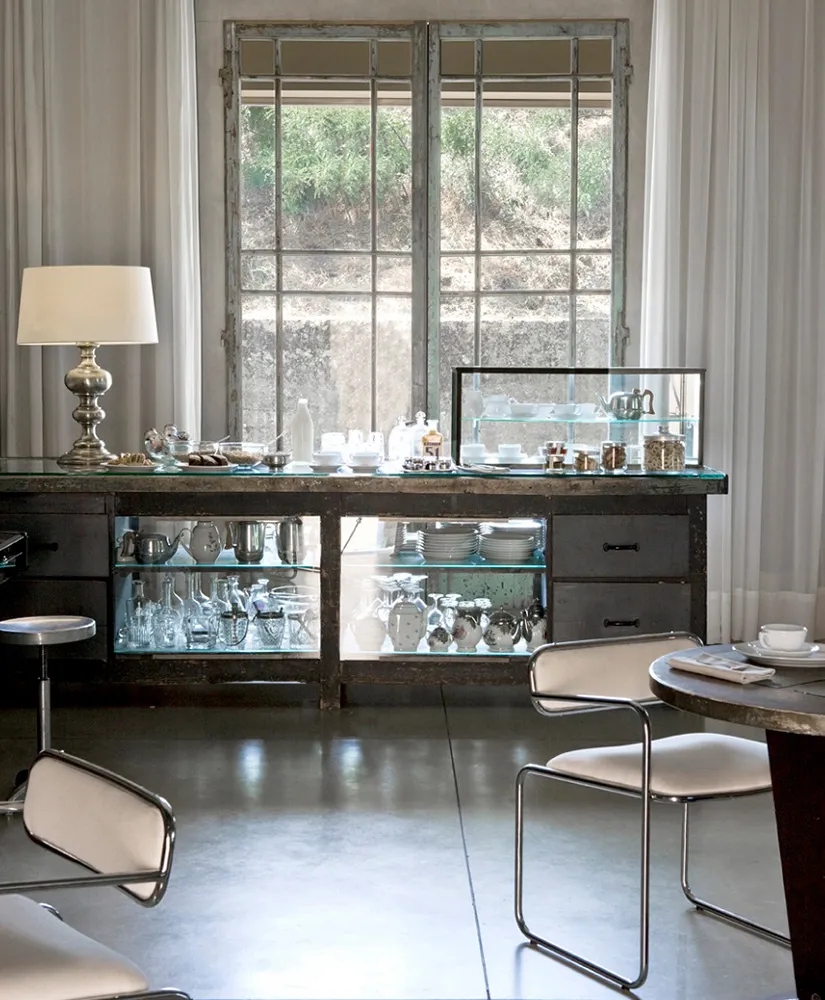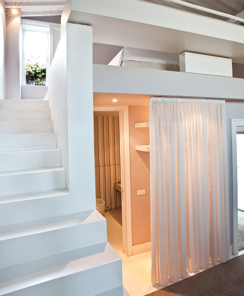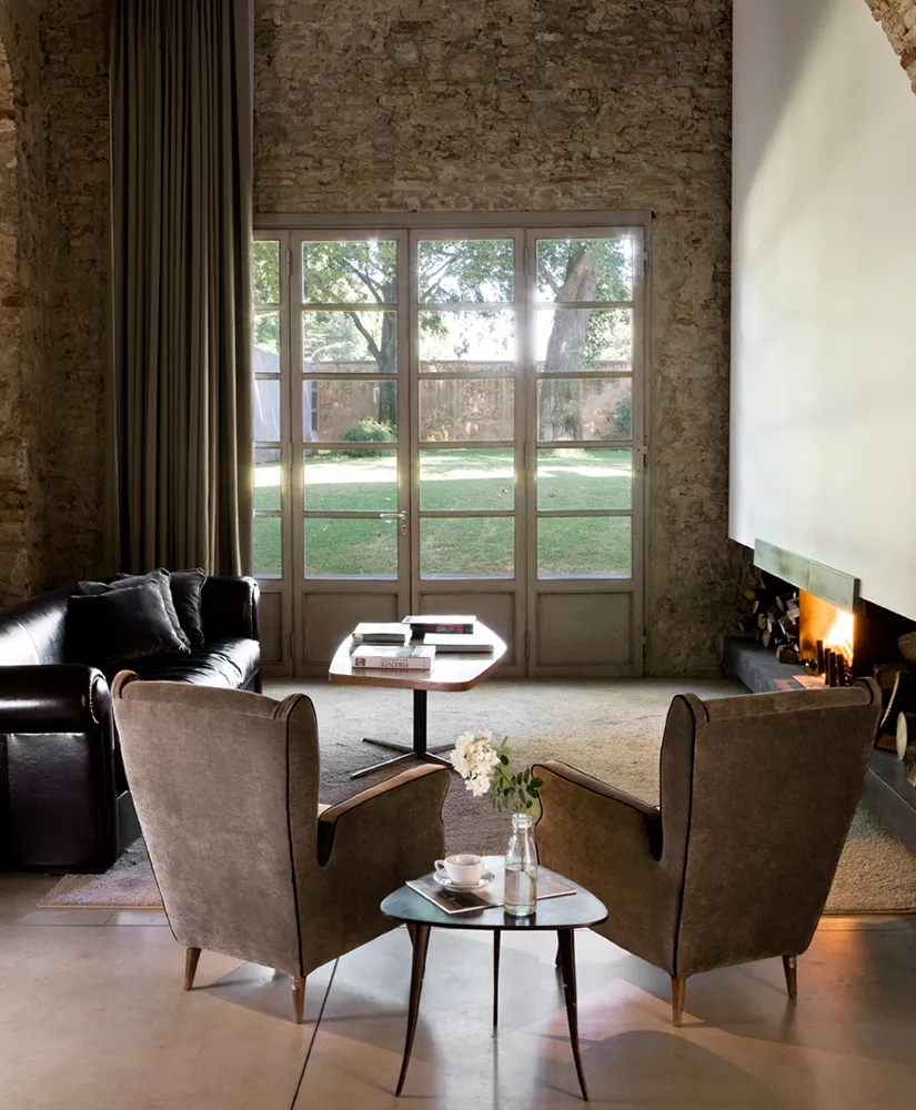 Each of the ten lofts is a self-contained composition—an interplay of antique pieces, mid-century icons, and custom furnishings in wood, Corian, and stone. Vaulted ceilings, exposed beams, and large windows connect interior and exterior spaces, dissolving boundaries between architecture and landscape. Whether you step out into the garden, the park, or the sandstone-edged pool, Riva Lofts feels like an organic extension of its surroundings—a living dialogue between urban energy and pastoral calm. Inside, textures do the talking: rough masonry against smooth plaster, vintage textiles beside minimalist steel, Tuscan warmth filtered through modern restraint. Each loft is unique, but all share the same quiet sophistication—a sense of belonging that transcends time and style.