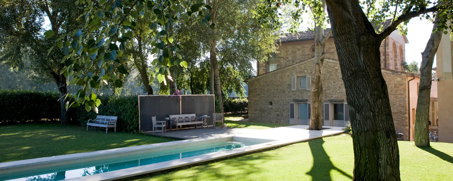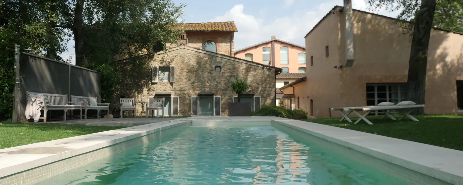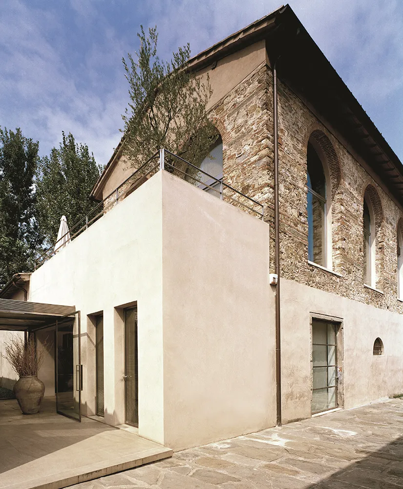 Tucked along Via Baccio Bandinelli, just across from Florence’s Parco delle Cascine, Riva Lofts is the city’s quiet secret—a space where architecture, art, and nature flow together as effortlessly as the nearby Arno. Once an 1880s factory and later a cluster of artisan workshops, the property was reimagined in 1999 by renowned architect Claudio Nardi as his own home and studio before becoming one of Florence’s most distinctive design retreats. Today, Riva Lofts remains a reflection of Nardi’s creative philosophy: industrial rawness softened by poetic modernism, where stone and light, history and innovation, coexist in perfect equilibrium.