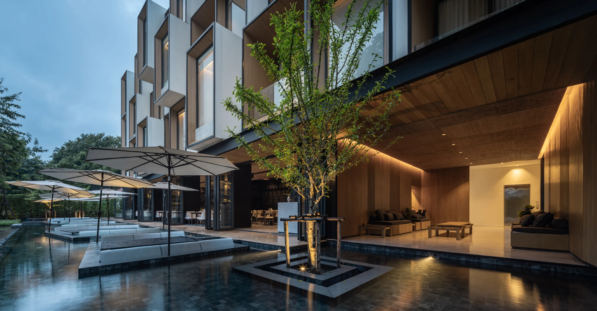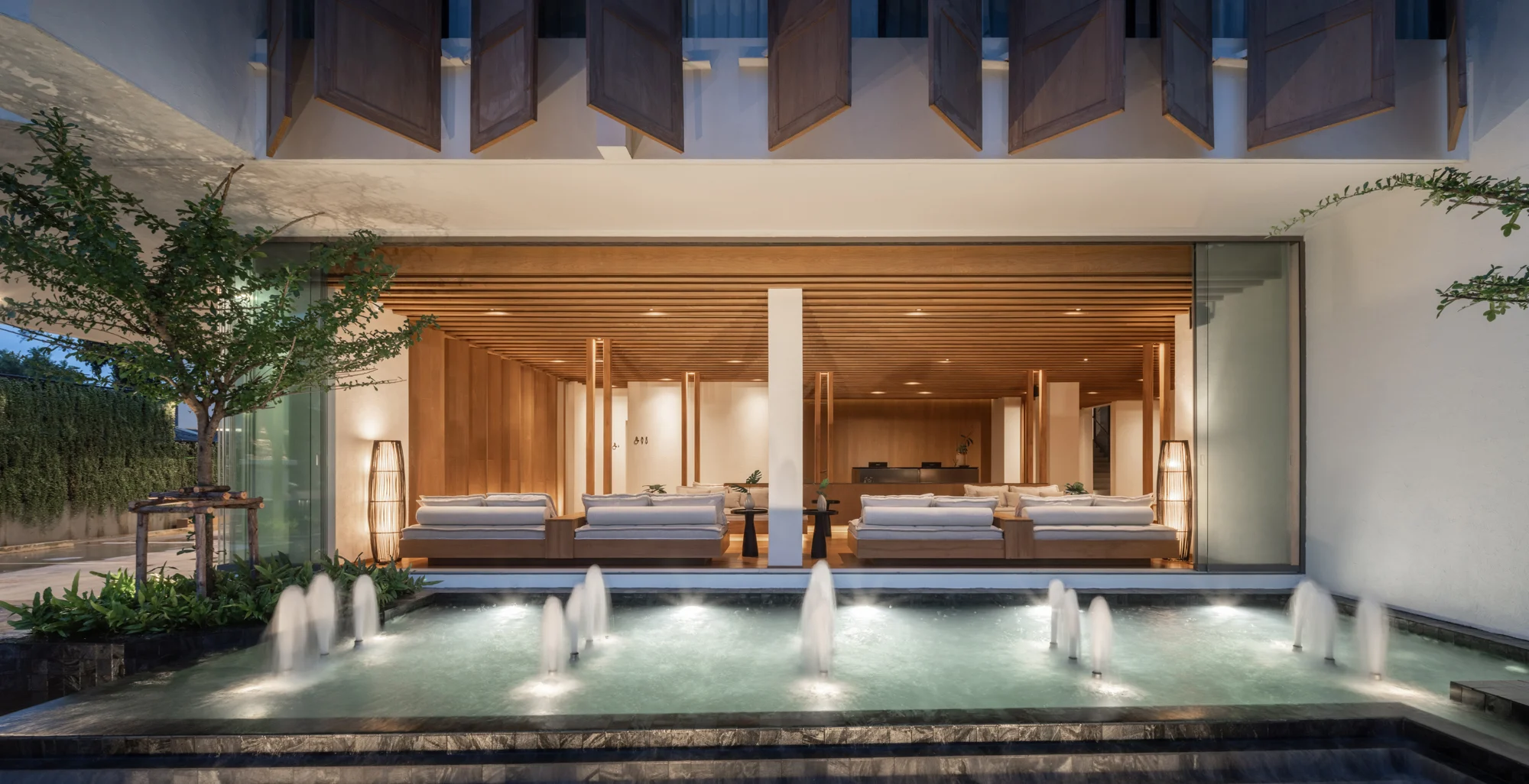 Designed with a strong indoor-outdoor connection, the resort integrates regional textures—teak wood, handmade tiles, woven textiles—into a contemporary, uncluttered framework. Local craftsmanship is present, but never forced. Instead of ornate decor, the design relies on natural materials, warm neutrals, and diffused light to establish its tone. Courtyards, breezeways, and reflection ponds all play into the resort’s quiet choreography. Public spaces like the riverside lounge and open-air lobby feel more like a private residence than a hotel. Here, design doesn’t shout—it whispers, encouraging stillness and slowing of time.