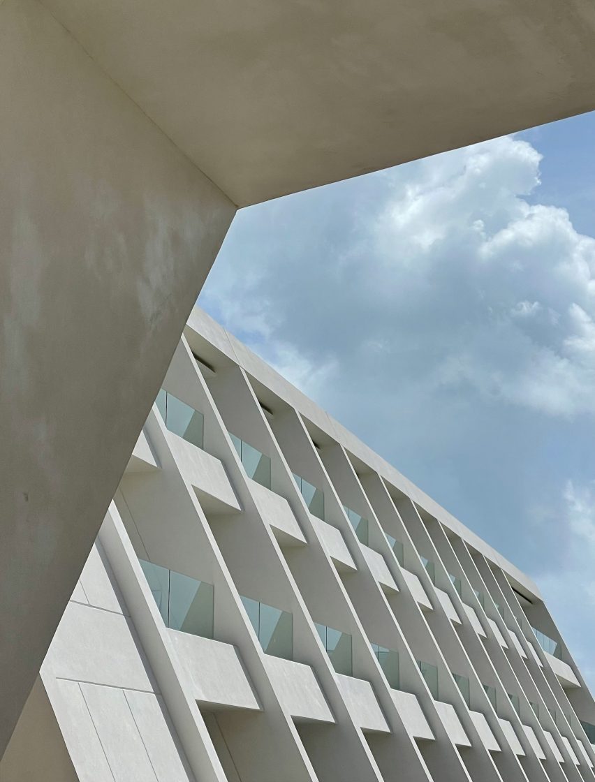 The property is spread across a 620-acre ecological reserve, and the approach alone sets the tone: a winding boardwalk through mangroves that opens onto a starkly beautiful, white-cube structure seemingly floating above the water. The design by Rockwell Group and Ian Schrager’s team feels part spaceship, part sacred geometry—where every sharp line is softened by sky, sand, and sea.