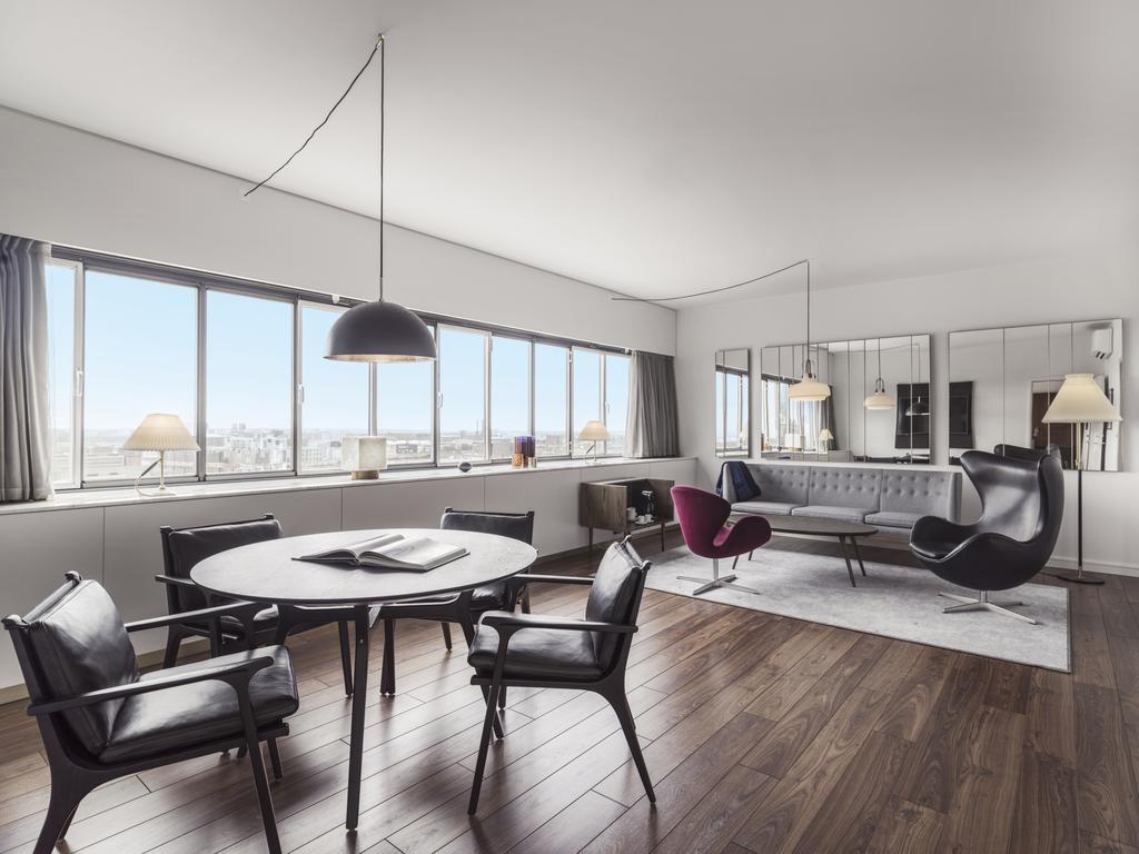 From the moment you walk into the sleek lobby, you’re met with Jacobsen’s greatest hits: the Egg, the Swan, the Drop chairs—now classics that began their lives right here. This is design with a capital D: sculptural, organic, and strikingly timeless.