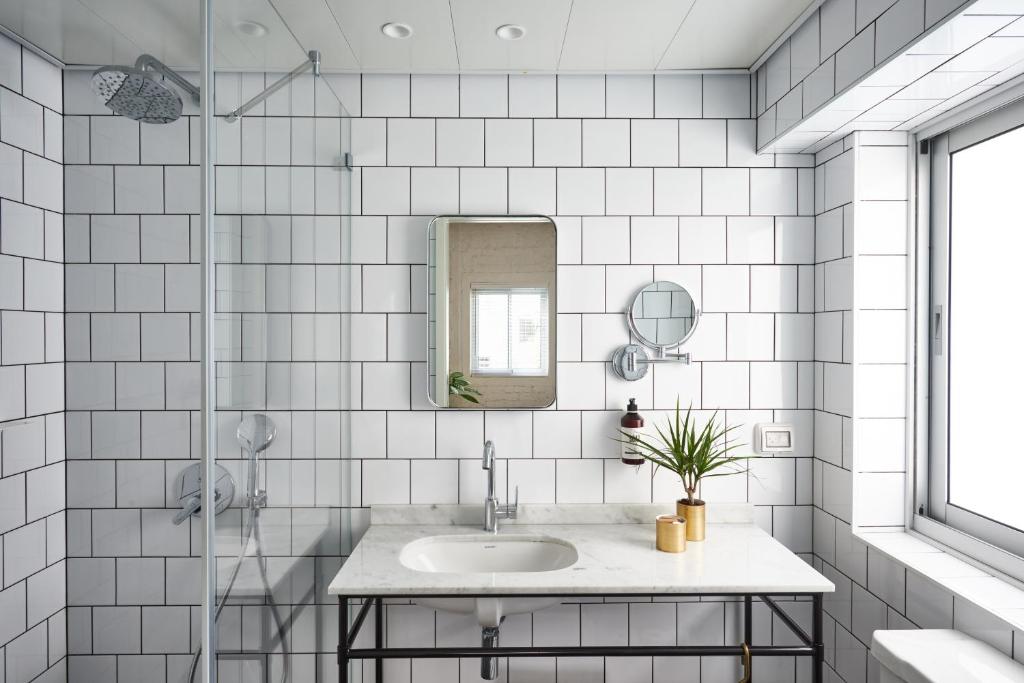 Every corner reflects subtle callbacks to the city’s art deco golden age: brass tiles gleam like sunlit boulevards, repurposed street lamps cast a nostalgic glow, vintage balcony railings add sculptural rhythm, and rich wood paneling grounds the space in warmth. Yet it avoids being a period piece—whitewashed brick, raw concrete walls, and sleek walnut furnishings bring Tel Aviv’s modern urban energy to the forefront.