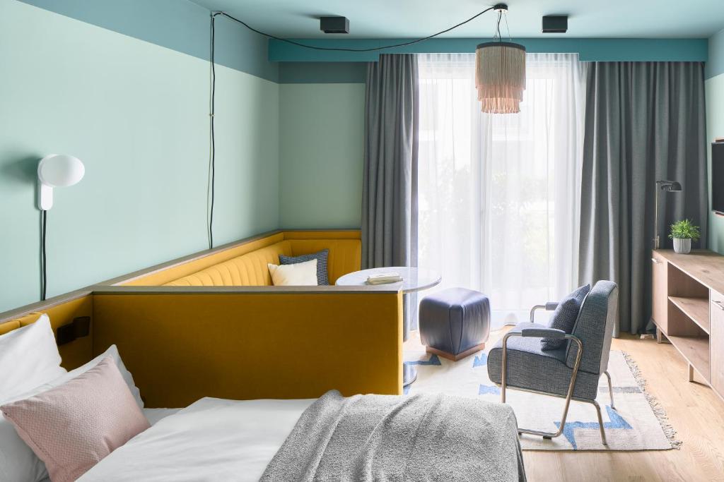 True to Locke’s hybrid DNA, the 151 apartments at Schwan Locke are designed for living, not just staying. Each space features sleek kitchenettes, plush bedding, and modular layouts that blur the line between home and hotel. Retro color pops, textured fabrics, and subtle industrial touches give the rooms personality, while large windows flood them with natural light. It’s accommodation that feels tailored—whether for a single night or a month-long stay.