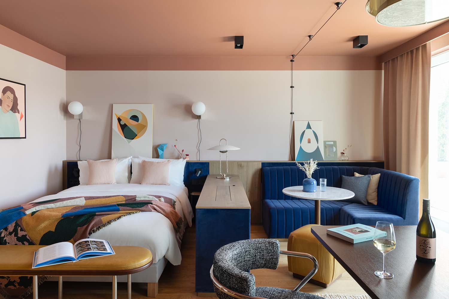 Locke’s Munich outpost, Schwan Locke, is not just a place to sleep—it’s a design statement. Conceived by Fettle, the interiors fuse industrial grit with soft retro charm, celebrating Locke’s ethos of crafted, characterful living. From the pastel-hued lobby to the leafy courtyard, every detail is intentionally layered to feel less like a hotel and more like the city’s most stylish living room.
