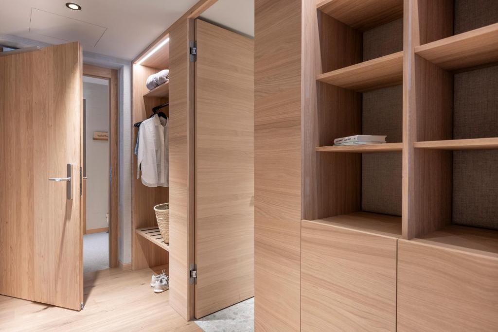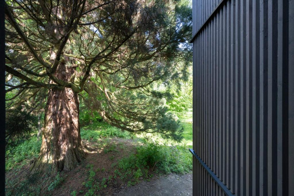 At the heart of the lakeside estate stands the elegant Villa Gminder, a historic architectural treasure built in 1909. It’s surrounded by four striking new buildings—minimalist in form, clad in dark glazed spruce, and topped with green pavilion roofs—that create a seamless dialogue between old and new. Set within a protected park of ancient trees, this thoughtful composition fosters a rare atmosphere of stillness and connection to nature.