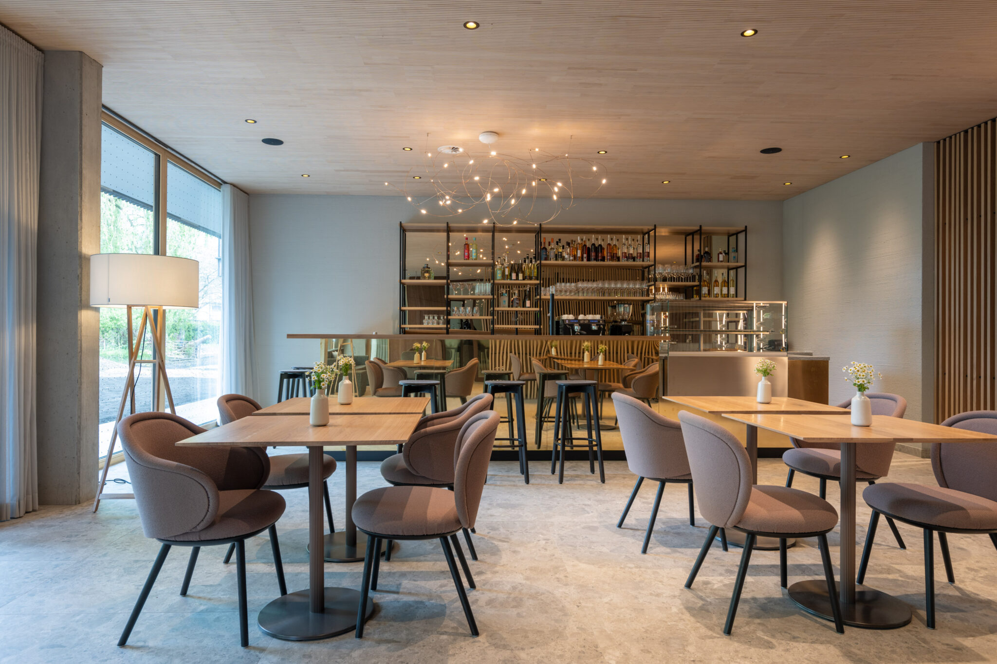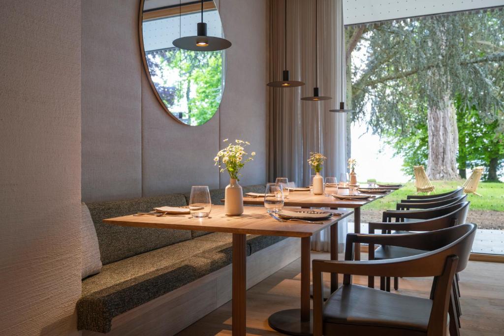 Set inside the original villa, Restaurant Pinus is a standout. Named for the black pines that dominate the grounds, the restaurant offers a modern, mostly vegetarian menu built around the principles of seasonality and sharing. Think radishes with pickled trout, mushroom ravioli, or lentils with Black Forest miso—all presented together, meant for tasting and talking. The drink program is equally inventive, with herbaceous infusions, fermented beverages, and a robust list of local wines and spirits from the Lake Constance region.