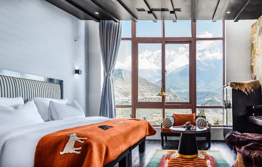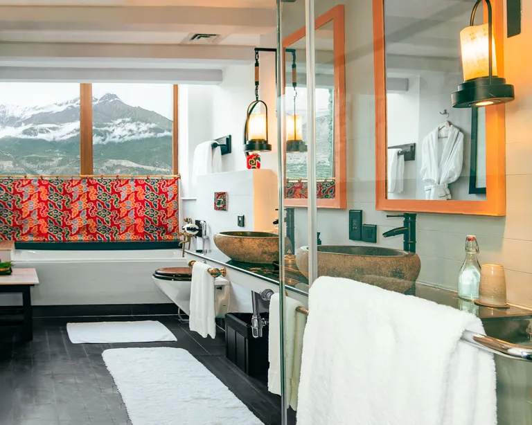 Shinta Mani Mustang’s architecture is a love letter to Mustang’s layered history and vibrant identity. Bill Bensley’s design eschews Western luxury clichés for a deeply contextual approach—one that places local craftsmanship, materiality, and storytelling at its heart. The lodge is built with stone, timber, and earth, echoing the forms and textures of the ancient walled city nearby. Interiors celebrate Tibetan aesthetics with hand-painted murals, carved wood panels, and brightly woven textiles sourced from regional artisans. Custom furniture and art pieces—many created by local craftspeople—sit alongside modern comforts, resulting in spaces that feel both rooted in tradition and resolutely contemporary. Each of the 29 suites is a sanctuary of layered warmth: panoramic floor-to-ceiling windows frame cinematic views of the Nilgiri range, while interiors balance earthy tones, yak-wool throws, and soft lighting to create a cocoon of comfort. This is not ostentatious luxury—it’s considered, soulful design that respects its setting and elevates the experience.